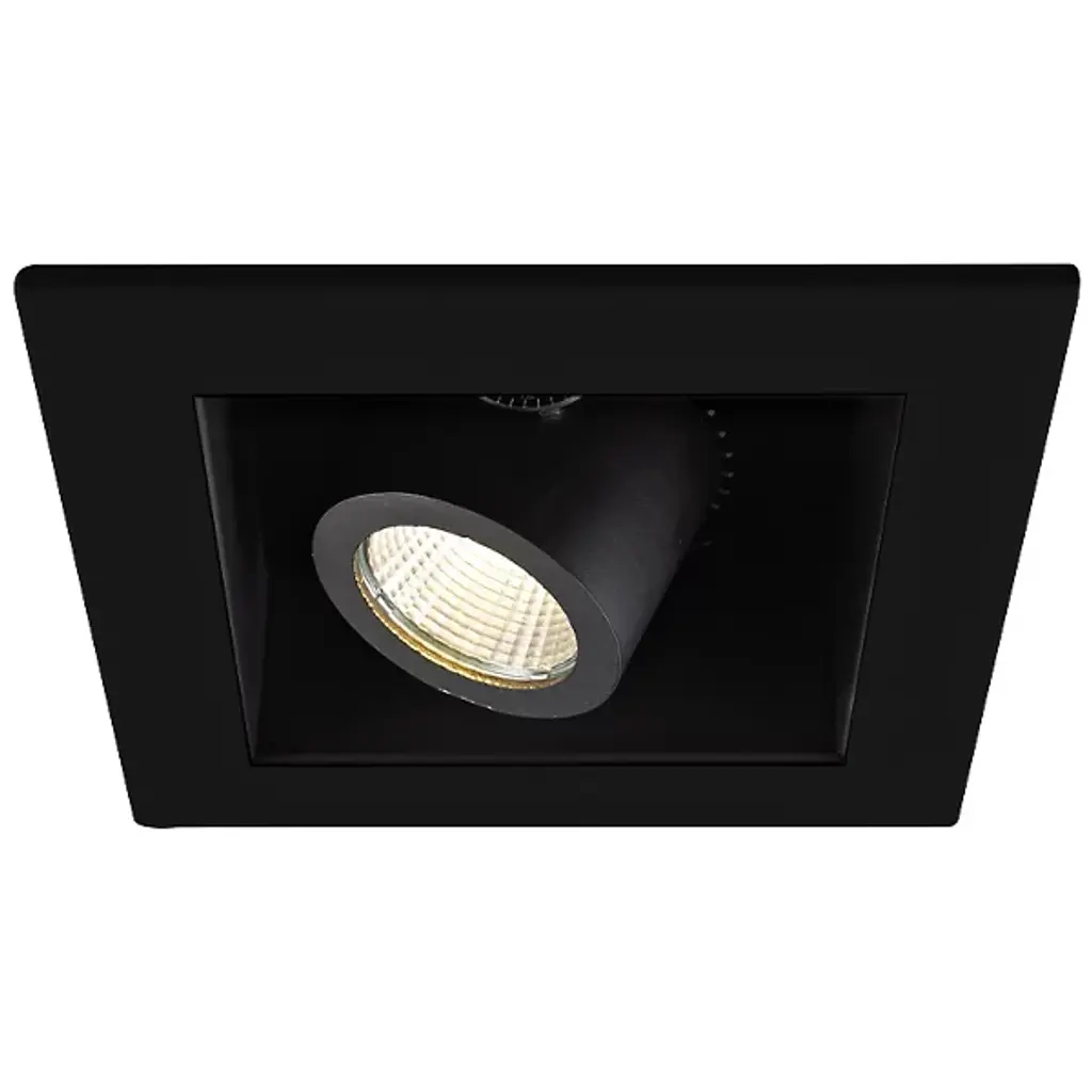 The Precision Multiples 4" 1x1 Trim by WAC Lighting is a cutting edge, square shaped trim designed to sit flush with the ceiling for a clean, architectural look. The trim is made of 20 gauge Steel and is available in an assortment of stylish yet low key finishes to complement the retractable, adjustable spotlight attached to the housing. The fixture includes a Die Cast Aluminum heat sink painted in Black abrasion-resistant powder coated paint.