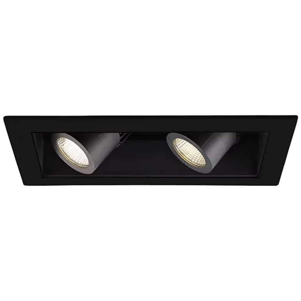 The Precision Multiples 4" 1x1 Trim by WAC Lighting is a cutting edge, square shaped trim designed to sit flush with the ceiling for a clean, architectural look. The trim is made of 20 gauge Steel and is available in an assortment of stylish yet low key finishes to complement the retractable, adjustable spotlight attached to the housing. The fixture includes a Die Cast Aluminum heat sink painted in Black abrasion-resistant powder coated paint.