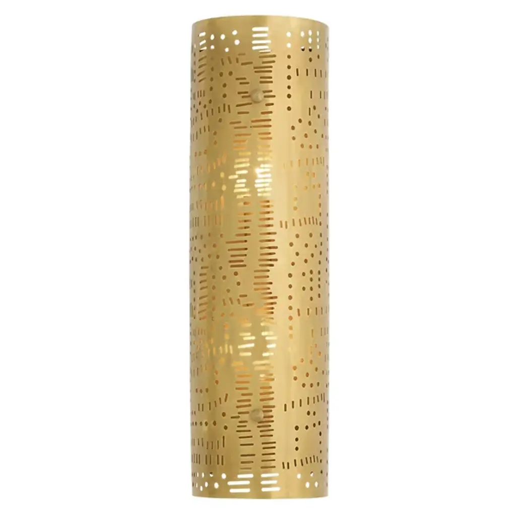 Featuring perforated metal in a sculptural assembly, this collection is born out of a love of architecture and the interplay of light over form. These perforations, a signature design element within Kelly's practice, diffuse and reflect light, adding delicate texture and a rich sense of depth to any space. International Orders: Lead times and availability vary for non-US 120V fixtures. Please contact us for all international inquiries.