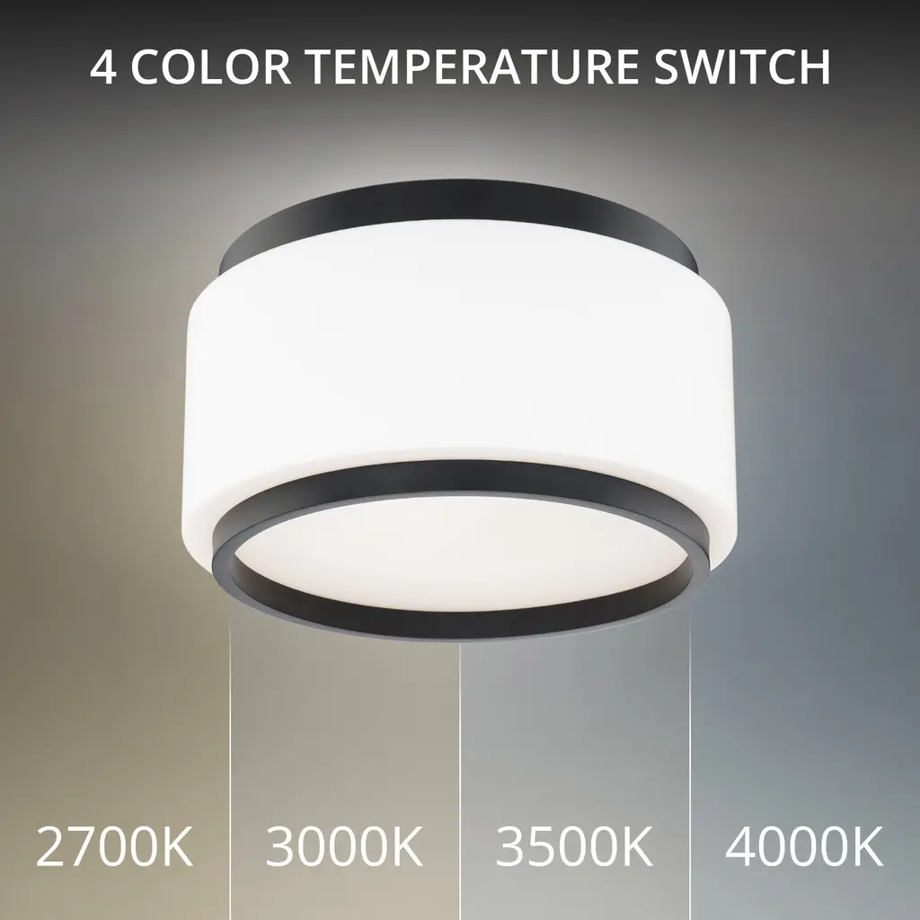 Elevate your ceiling with the elegant Preston flush mount light defined by its dramatic opal shade encased in a polished circular frame. The etched shade softly diffuses the light from integrated, color temperature selectable LEDs, creating a warm and inviting glow. Offered in both 8 and 16-inch sizes, Preston is available in aged brass or black finishes.