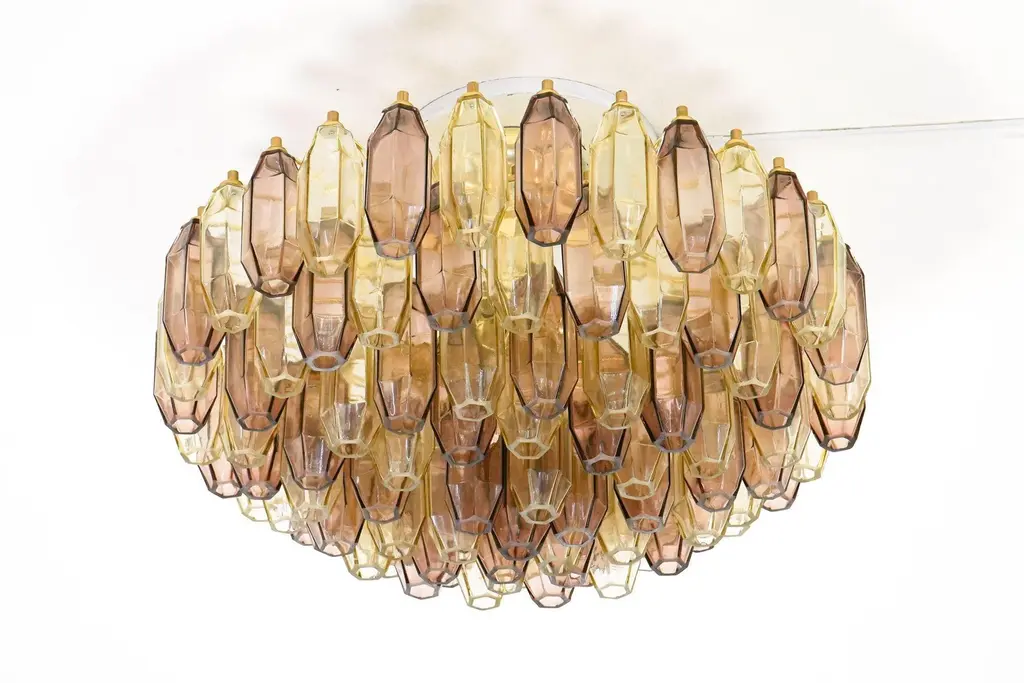 Prismatico Amber And Amethyst Compact Glass Chandelier By Piattelli