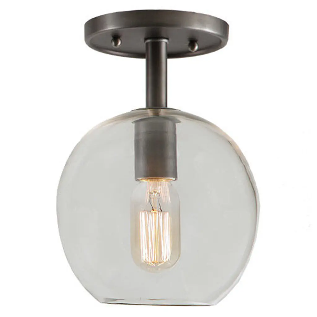 Introducing the Atwell Close-to-Ceiling fixture from Progress Lighting. Crafted from durable steel with a sleek matte black finish, this modern piece features long lines ending in a clear glass globe shade, creating a contemporary aesthetic. The flush mount design, measuring 5.87" in width, 7.87" in height, and 5.87" in length, is perfect for bedrooms, halls, foyers, kitchens, and more. The fixture is damp rated, making it suitable for use in bathrooms, powder rooms, or covered outdoor spaces. With a single halogen bulb, it delivers bright illumination and can be dimmed for versatility. Backed by a 1-year limited warranty, the Atwell Close-to-Ceiling fixture is a stylish and functional addition to any modern space.