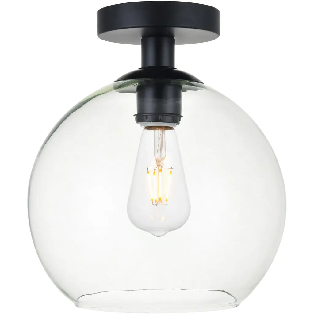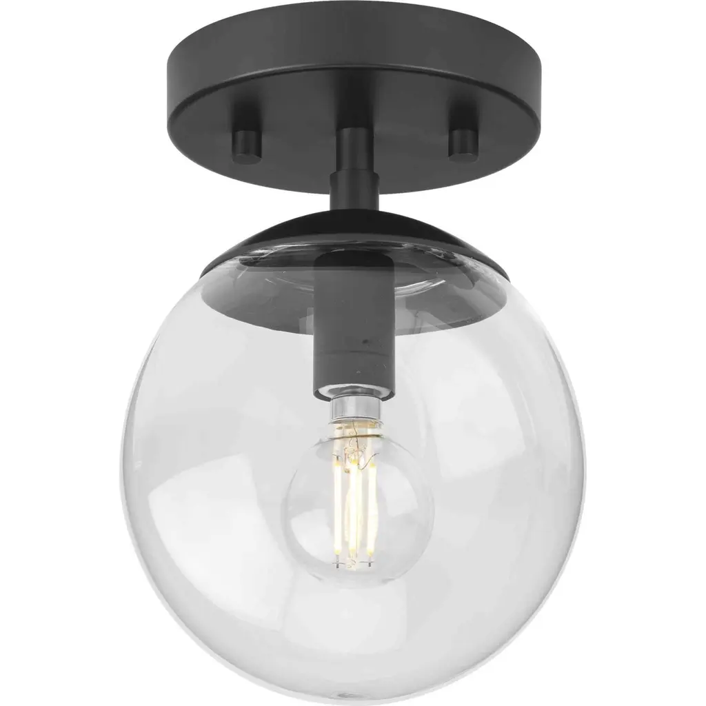 Progress Lighting Atwell 1-light Flush Mount Ceiling Light In Matte Black With Clear Glass Globe Shade