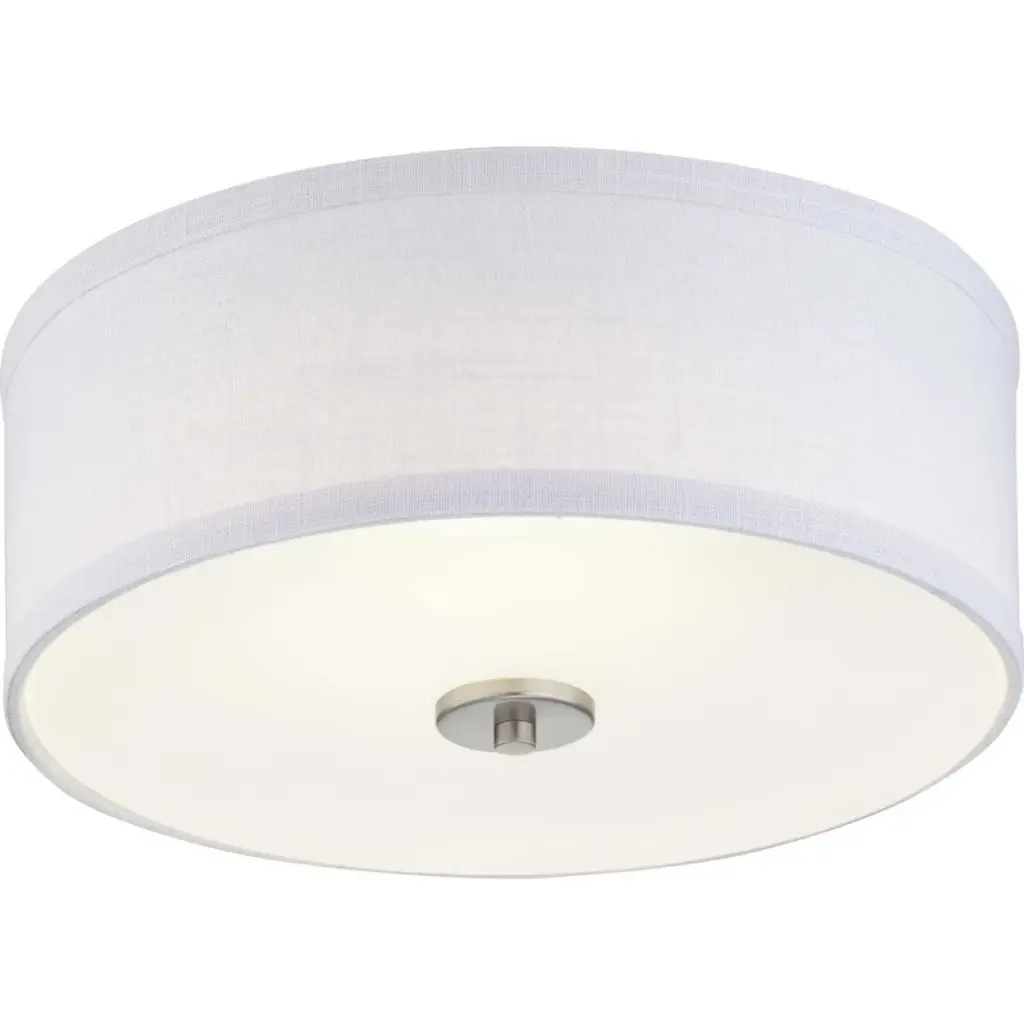 The Inspire Collection LED flush mount from Progress Lighting offers elegant simplicity with a touch of traditional charm and modern efficiency. The graphite finish and summer linen shade create a contemporary look, while the 17-watt LED bulb provides a bright yet inviting glow. Measuring 13 inches in width, height, and length, this flush mount is ideal for rooms with limited ceiling height and is suitable for damp environments. Crafted from durable fabric, it complements a range of interior styles and is a versatile choice for your lighting needs.