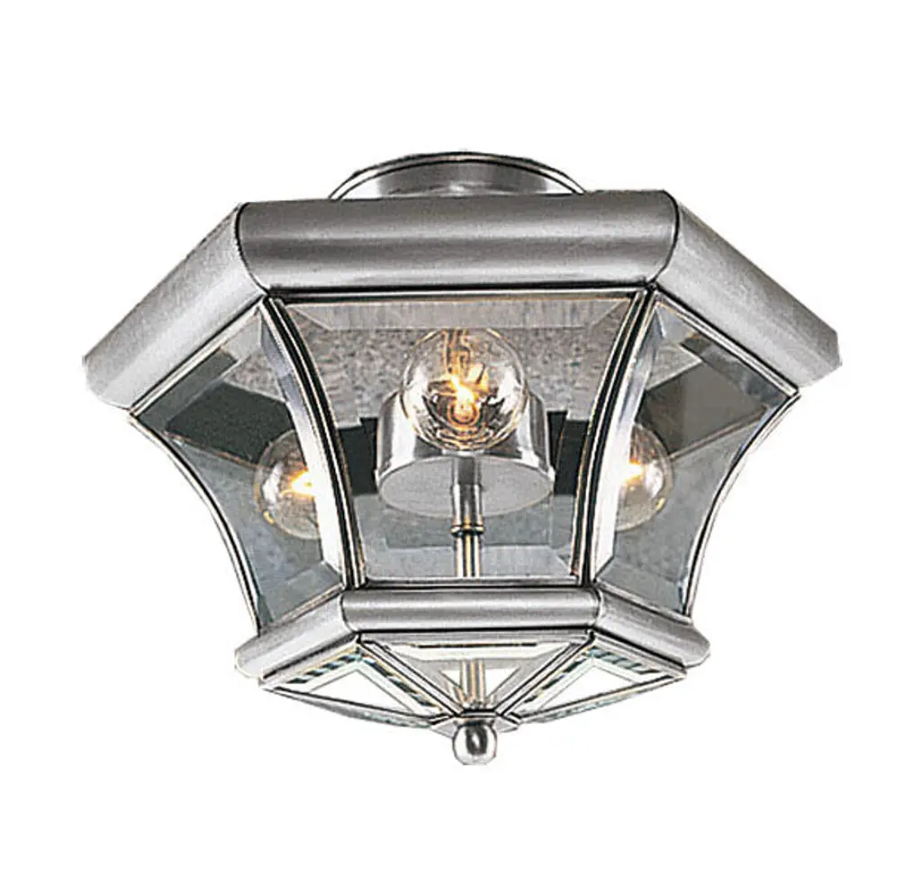 Introducing the Richmond Hill Collection from Progress Lighting, featuring the stunning four-light octagonal close-to-ceiling fixture. Crafted from solid brass with a Brushed Nickel finish, this fixture exudes traditional elegance. The clear, bound beveled glass shade adds a touch of sophistication. With a width of 11.13" and a height of 6.25", this damp-rated fixture is perfect for halls, closets, porches, laundry rooms, and bedrooms. The hanging method is flush, and it includes a canopy with a diameter of 11.01". This fixture requires four G-lamps with a maximum wattage of 25 Watts each. Elevate your space with the timeless beauty and quality craftsmanship of the Richmond Hill Collection.