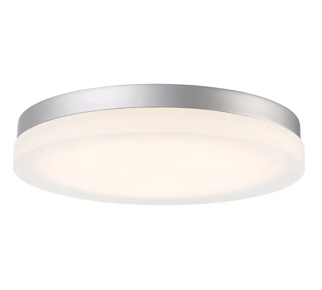 The energy-efficient Proti LED Round Flush Mount looks modern and streamlined, and combines an understated metal frame with a frosted glass shade. Designed for a bath but equally beautiful in a kitchen, hall or bedroom, it casts a diffused glow that feels warm and welcoming.