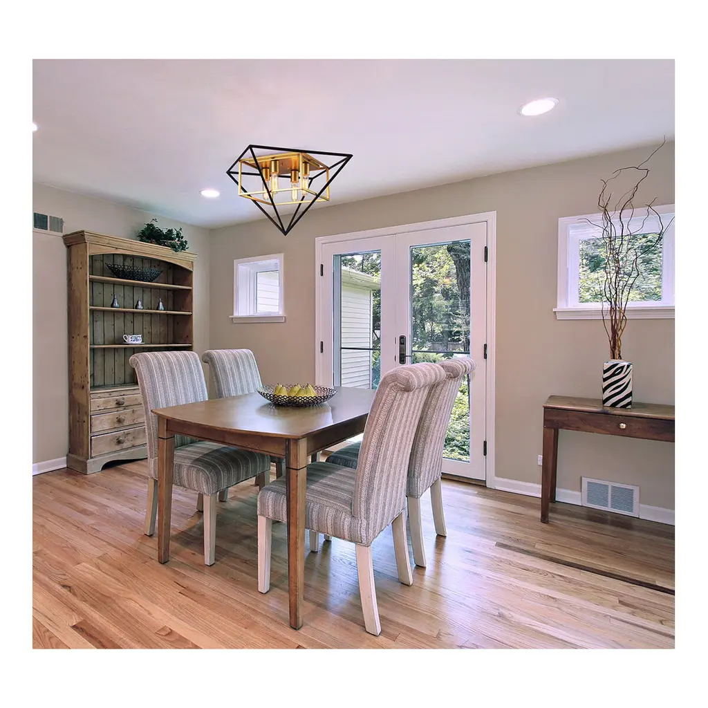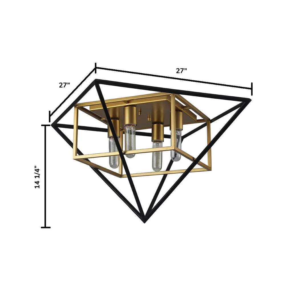 Pryor - 4-Light Geometric Flush Mount - Antique Gold and Black Finish