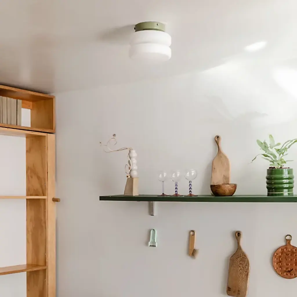 The Puck Outdoor Wall / Flushmount by In Common With makes a striking statement with its layered shade, epitomizing bold simplicity in its minimalist design. Each fixture is unique, featuring disc-shaped hand-blown glass diffusers complemented by a domed metal cap available in various colors. The design inhabits an anti-trend philosophy, putting the focus on simplicity and functionality over intricate details or a passing fad, resulting in a timeless aesthetic suitable for any environment. With wet-listed construction and expressive styling, it seamlessly merges Contemporary simplicity with a touch of retro flair, showcasing Artisanal Modern craftsmanship for an exceptional lighting solution.