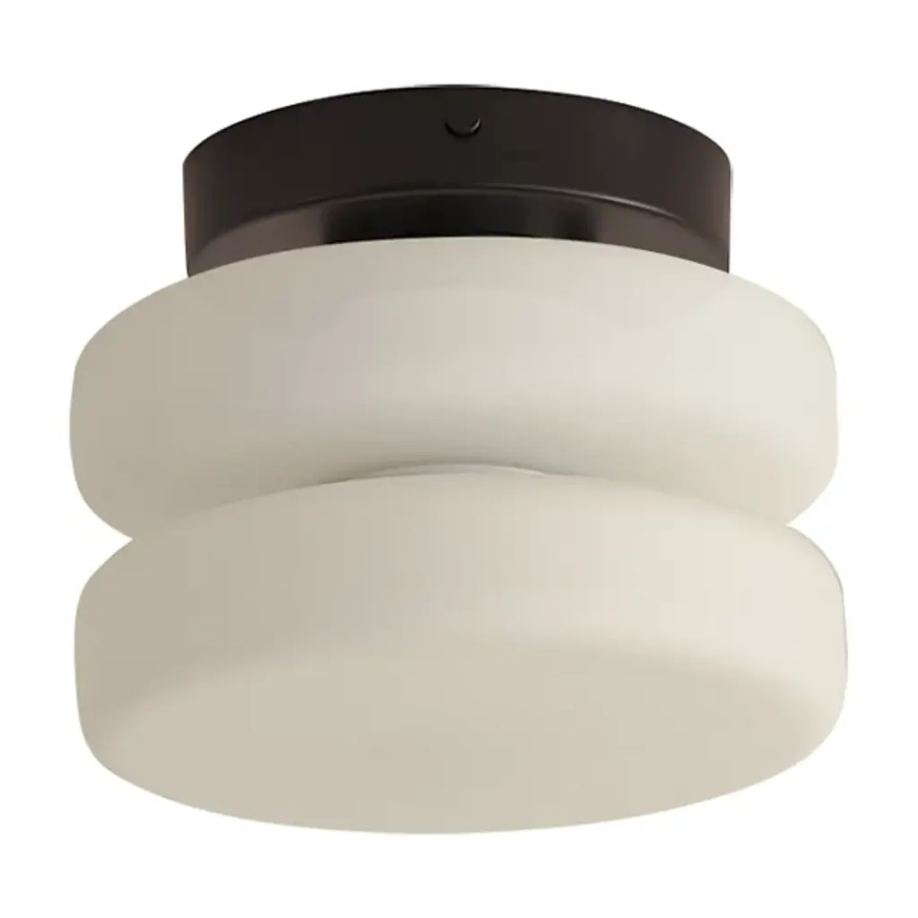 The Puck Wall / Flushmount from In Common With is dressed to impress with its double-stacked shade, capturing bold simplicity in its minimalist design. Each fixture is distinct, adorned with disc-shaped hand-blown glass diffusers and accented by a domed metal cap in various colors. The design embraces an anti-trend philosophy, prioritizing simplicity and functionality over intricate details or fads, resulting in a timeless aesthetic suitable for any environment. With damp-listed construction and expressive styling, it blends Contemporary simplicity with a hint of retro flair, showcasing Artisanal Modern craftsmanship for a truly exceptional lighting solution.