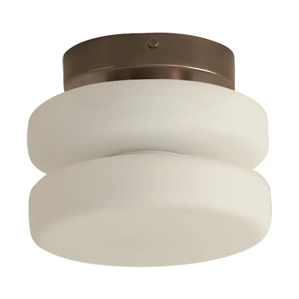 The Puck Wall / Flushmount from In Common With is dressed to impress with its double-stacked shade, capturing bold simplicity in its minimalist design. Each fixture is distinct, adorned with disc-shaped hand-blown glass diffusers and accented by a domed metal cap in various colors. The design embraces an anti-trend philosophy, prioritizing simplicity and functionality over intricate details or fads, resulting in a timeless aesthetic suitable for any environment. With damp-listed construction and expressive styling, it blends Contemporary simplicity with a hint of retro flair, showcasing Artisanal Modern craftsmanship for a truly exceptional lighting solution.