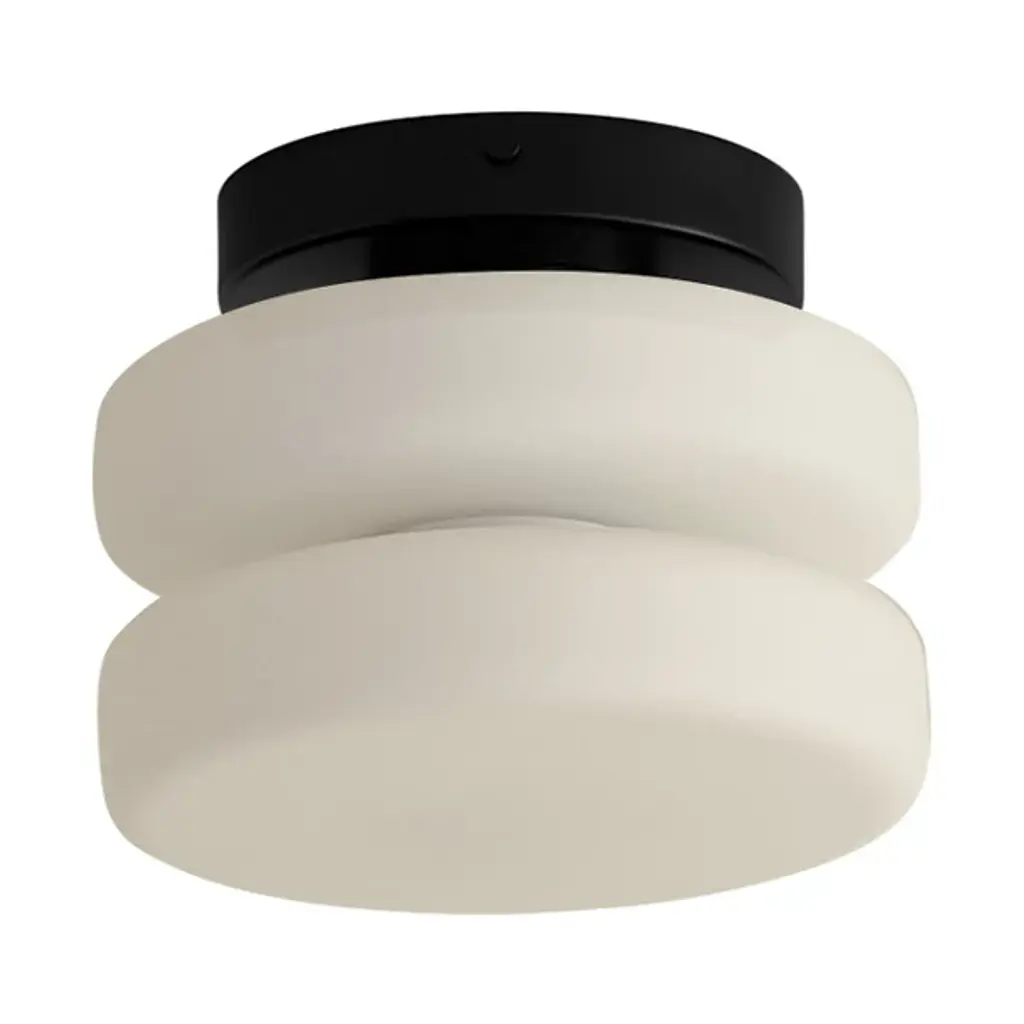 The Puck Wall / Flushmount from In Common With is dressed to impress with its double-stacked shade, capturing bold simplicity in its minimalist design. Each fixture is distinct, adorned with disc-shaped hand-blown glass diffusers and accented by a domed metal cap in various colors. The design embraces an anti-trend philosophy, prioritizing simplicity and functionality over intricate details or fads, resulting in a timeless aesthetic suitable for any environment. With damp-listed construction and expressive styling, it blends Contemporary simplicity with a hint of retro flair, showcasing Artisanal Modern craftsmanship for a truly exceptional lighting solution.