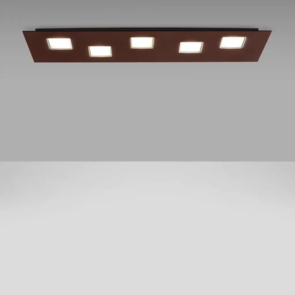 Sharp, sophisticated, and created with great attention to detail. Italian studio Pellegrini + Mengato Design has achieved a true sense of movement with the Quarter 5-Light LED Flushmount from Fabbian. Slight tweaks in positioning give its Polycarbonate cubes a feeling as though they neatly bounce from one side to another. LEDs are sifted through the cubes to produce a clean, vibrant glow. Its long aluminum rectangular structure brings the piece together, and its elevated design helps produce clean angular cast shadows with ambient light from below.