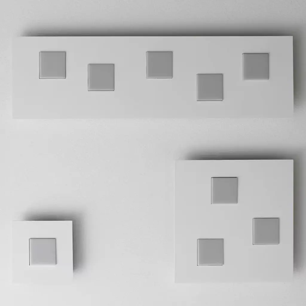 Sharp, sophisticated, and created with great attention to detail. Italian studio Pellegrini + Mengato Design has achieved a true sense of movement with the Quarter 5-Light LED Flushmount from Fabbian. Slight tweaks in positioning give its Polycarbonate cubes a feeling as though they neatly bounce from one side to another. LEDs are sifted through the cubes to produce a clean, vibrant glow. Its long aluminum rectangular structure brings the piece together, and its elevated design helps produce clean angular cast shadows with ambient light from below.