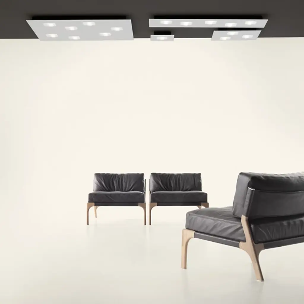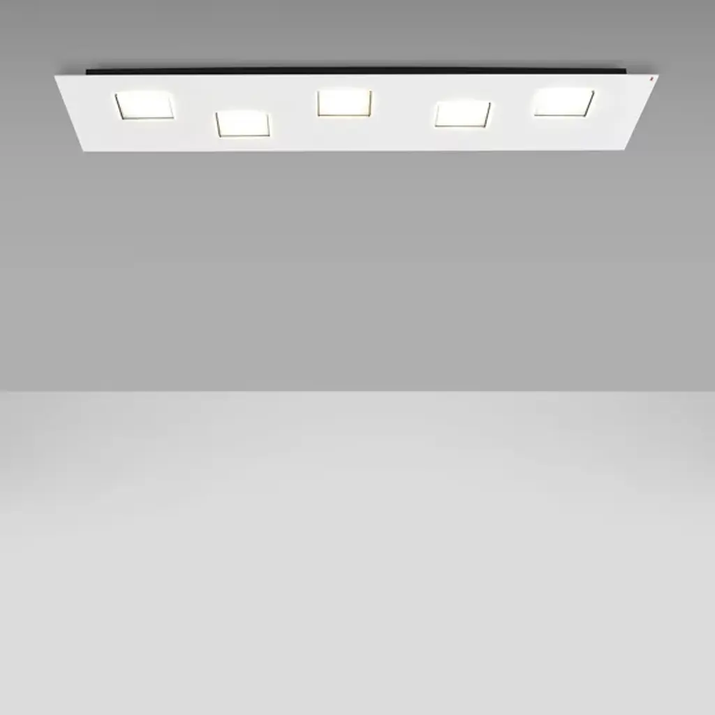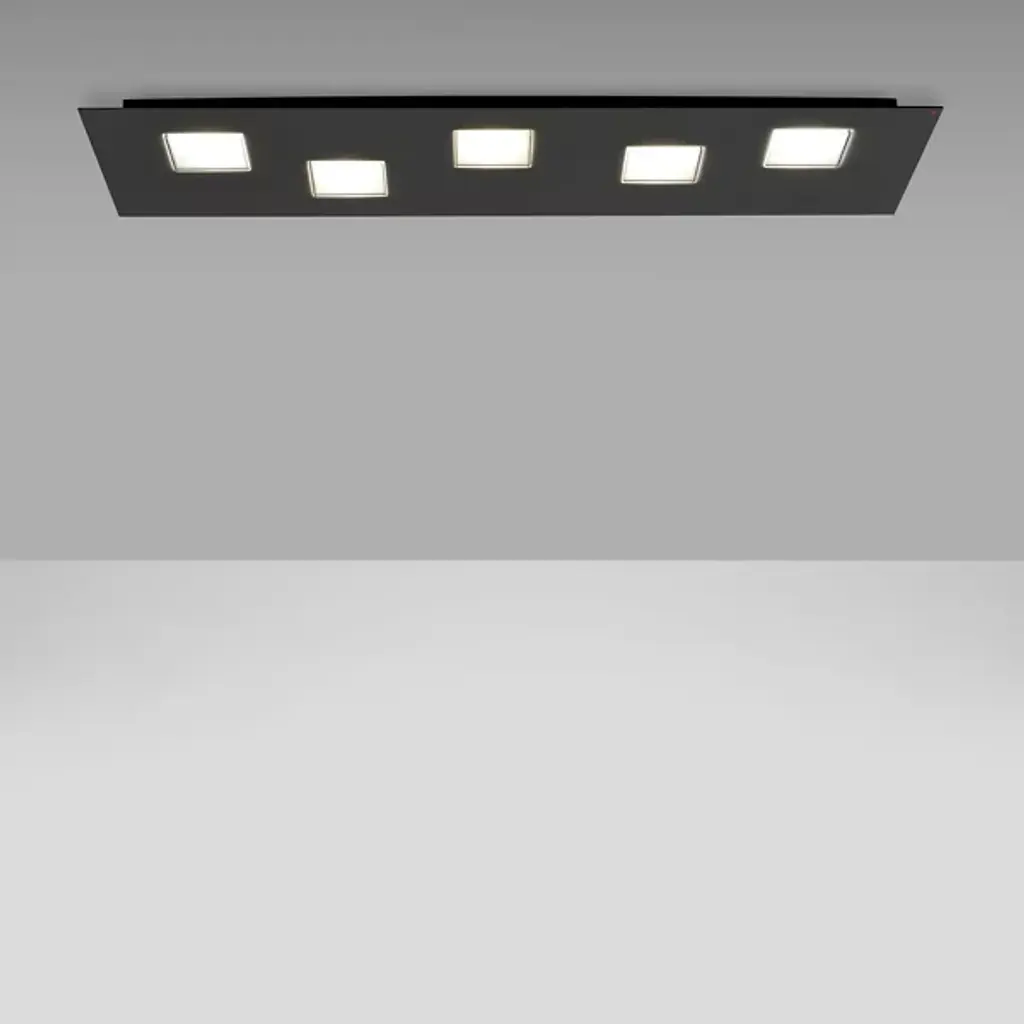 Sharp, sophisticated, and created with great attention to detail. Italian studio Pellegrini + Mengato Design has achieved a true sense of movement with the Quarter 5-Light LED Flushmount from Fabbian. Slight tweaks in positioning give its Polycarbonate cubes a feeling as though they neatly bounce from one side to another. LEDs are sifted through the cubes to produce a clean, vibrant glow. Its long aluminum rectangular structure brings the piece together, and its elevated design helps produce clean angular cast shadows with ambient light from below.
