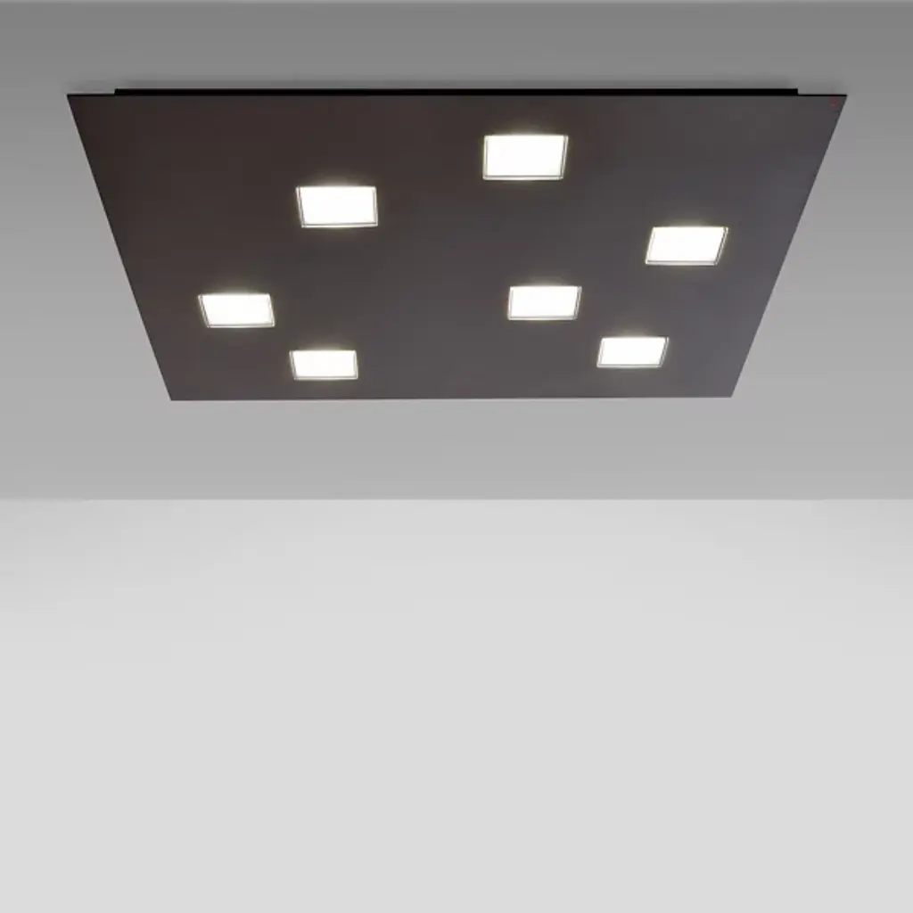 Movement and order wrapped together in a stellar contemporary Italian piece. Anyone with a taste for sophistication and clean shaped designs can appreciate the Quarter 7-Light LED Flushmount from Fabbian. Created by Pellegrini + Mengato Design, LED-lit cubes produce an elegant formation of light and shape. The polycarbonate cubes move about freely in an asymmetrical fashion along a broad aluminum plate, producing a formation of clean encompassing lighting. Its lifted square aluminum structural plate gives each cube enough room to be individually appreciated, while also providing a sense of order to the overall piece.