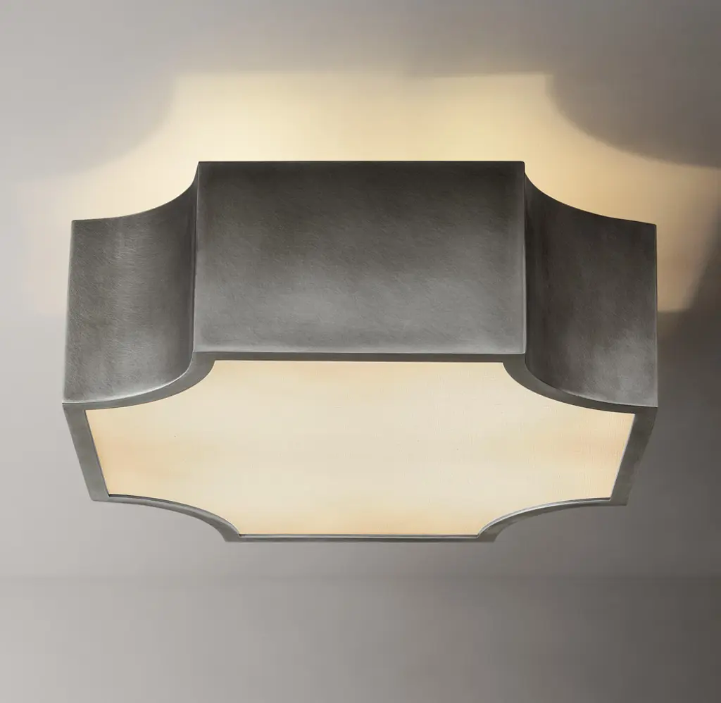Merging classic architectural inspiration with a Midcentury mindset, our fixture has a bold, sculptural prescence. The stylized quatrefoil design pairs an antiqued metal frame with a frosted diffuser to softly filter the light.