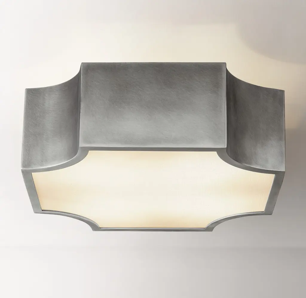 Merging classic architectural inspiration with a Midcentury mindset, our fixture has a bold, sculptural prescence. The stylized quatrefoil design pairs an antiqued metal frame with a frosted diffuser to softly filter the light.
