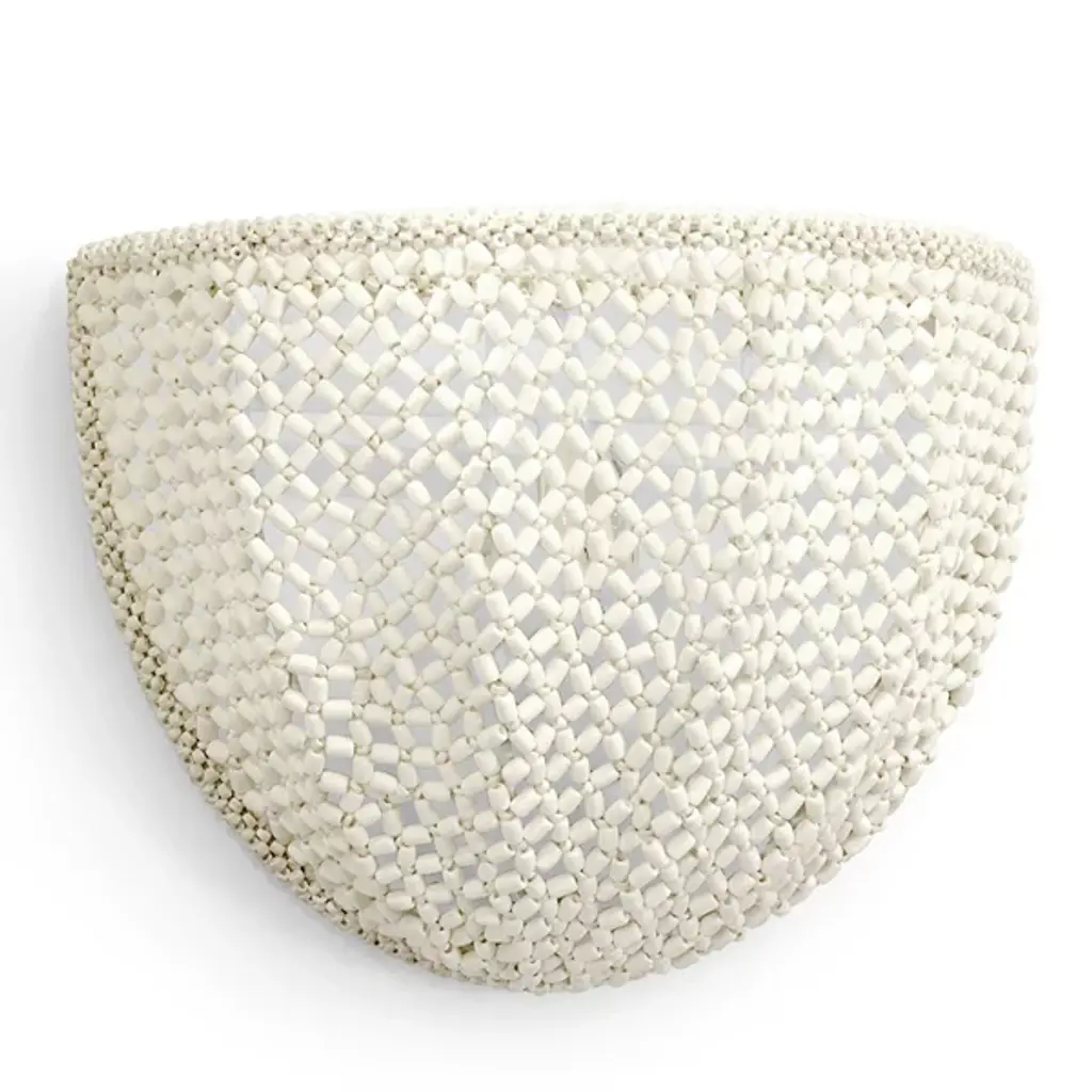 The Quinn Flushmount from Palecek fills one with wonder with a smooth dome form covered from top to bottom with painstakingly arranged organic beads. This nod to the coastal aesthetic speaks to Palecek's aim of showcasing nature's beauty. The piece sits flush on the ceiling with a minimal metal frame. Varying in sizes, hand-sewn wood and coco beads come together as a gorgeous weave. These beads act as the flushmount's shade, nestling the lamping inside to reduce glare. The woven beads create an airy silhouette as warm light streams past them.