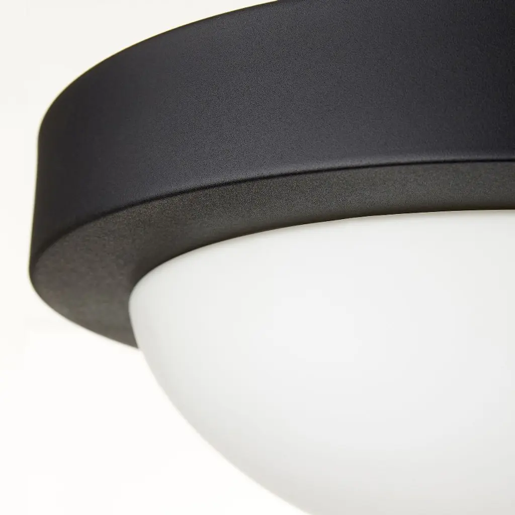 Collection: Contempo, Finish Color: Noir, Width: 11", Height: 3.75", Hanging Method: Flush, Number Of Bulbs: 2, Wattage: 13 Watts, Dimmable: No, Moisture Rating: Damp Rated, Desc: Shade Included: Yes. ,