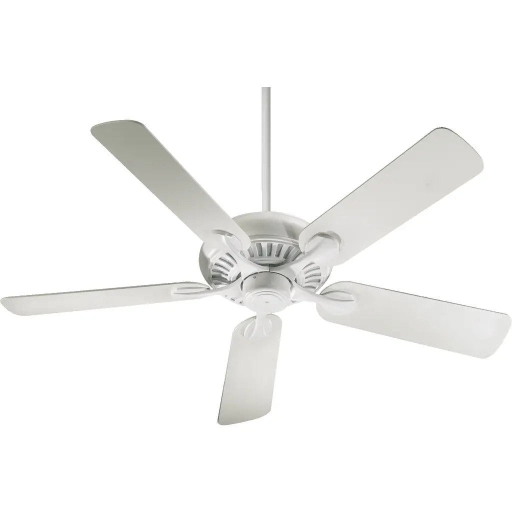 Introducing the Medallion Ceiling Fan by Quorum Lighting. This stunning fan features a sleek Studio White finish that effortlessly complements any decor. With a generous 52" blade span and 5 blades in the same Studio White color, this fan provides optimal air circulation in any room. The 14 blade pitch ensures efficient airflow, while the 153 mm fan motor size guarantees powerful performance. The Medallion Ceiling Fan can be easily installed using the flush hanging method, making it perfect for low ceilings. The optional light kit allows you to customize the fan to your liking. Control the fan's speed with the 3-speed variable control type, ensuring your desired level of comfort. Designed for dry locations, this fan is ideal for bedrooms, living rooms, and more. With a limited lifetime warranty, you can trust in the quality and durability of this Quorum Lighting product. Upgrade your space with the Medallion Ceiling Fan today!