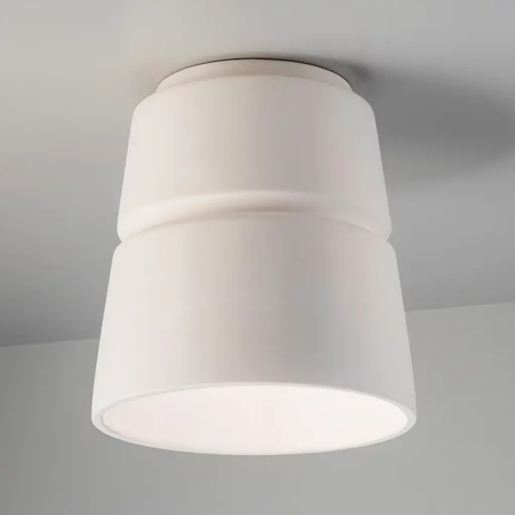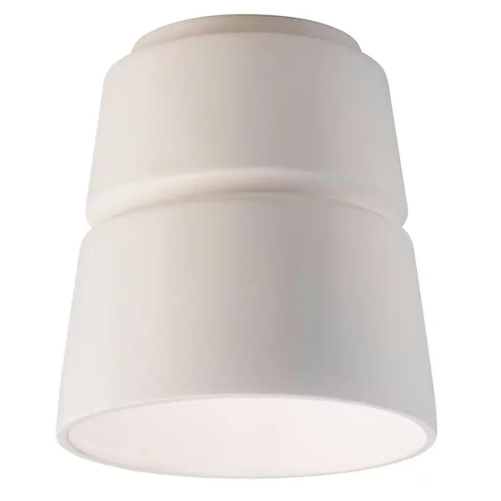 Improve your indoor lighting scheme with a Justice Design Group Radiance Cone Flushmount. This modern, overhead light is sculpted with a sleek and stylish ceramic exterior, allowing for a striking and durable design. This powerful, cone-shaped light produces warm, ambient downlight that will reach the far corners of your favorite indoor space. Use this overhead flushmount light to transform the look of your living room, hallway, bedroom or finished basement space.