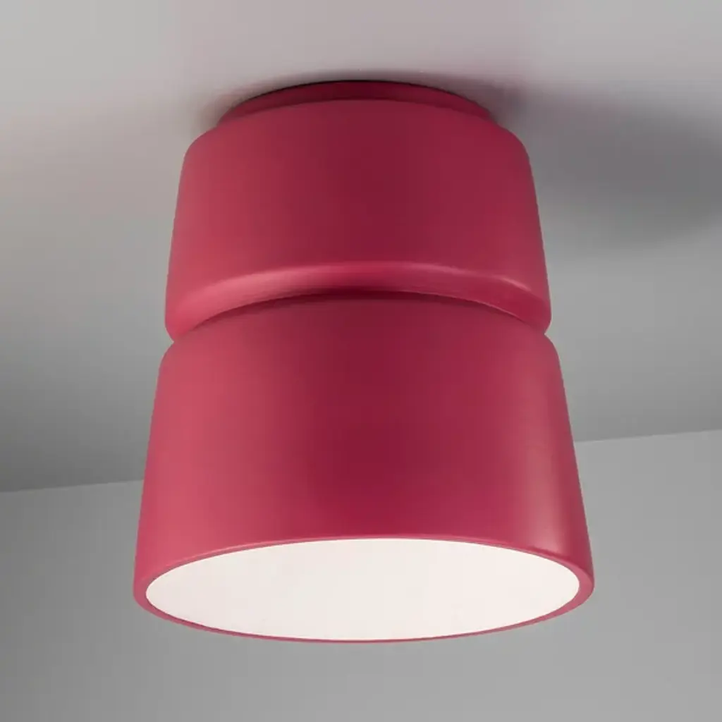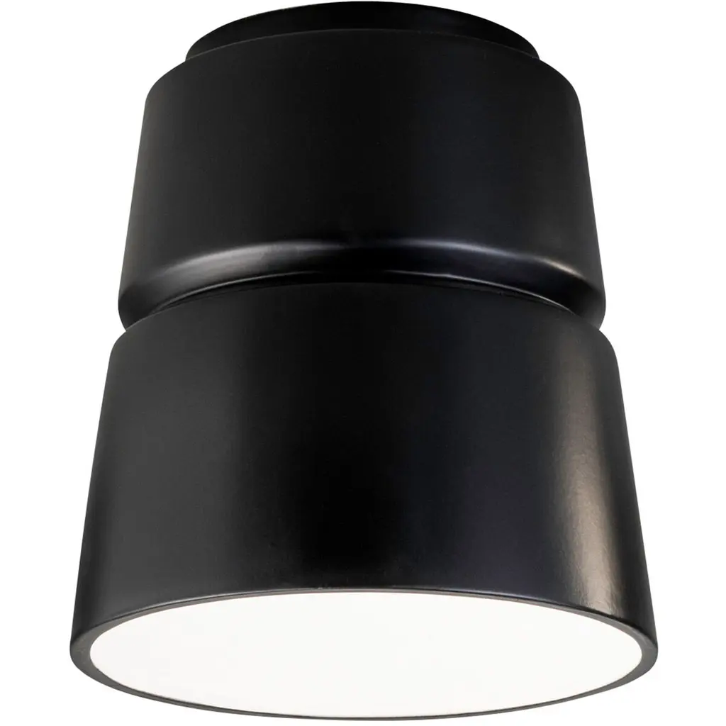 Improve your indoor lighting scheme with a Justice Design Group Radiance Cone Flushmount. This modern, overhead light is sculpted with a sleek and stylish ceramic exterior, allowing for a striking and durable design. This powerful, cone-shaped light produces warm, ambient downlight that will reach the far corners of your favorite indoor space. Use this overhead flushmount light to transform the look of your living room, hallway, bedroom or finished basement space.