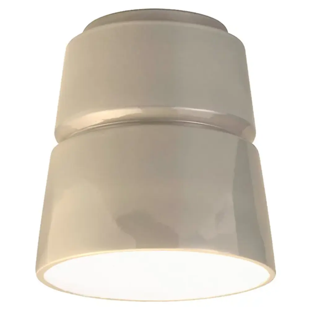 Improve your indoor lighting scheme with a Justice Design Group Radiance Cone Flushmount. This modern, overhead light is sculpted with a sleek and stylish ceramic exterior, allowing for a striking and durable design. This powerful, cone-shaped light produces warm, ambient downlight that will reach the far corners of your favorite indoor space. Use this overhead flushmount light to transform the look of your living room, hallway, bedroom or finished basement space.