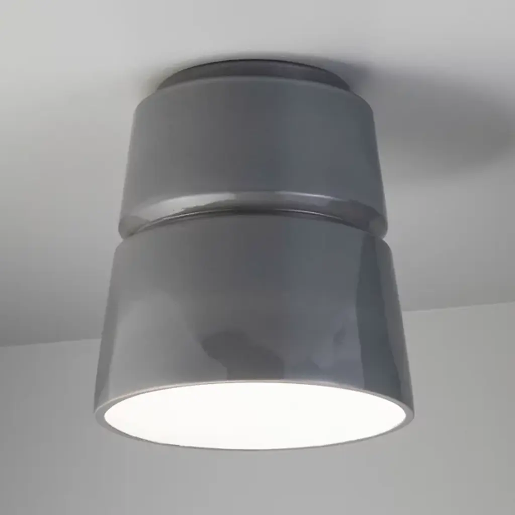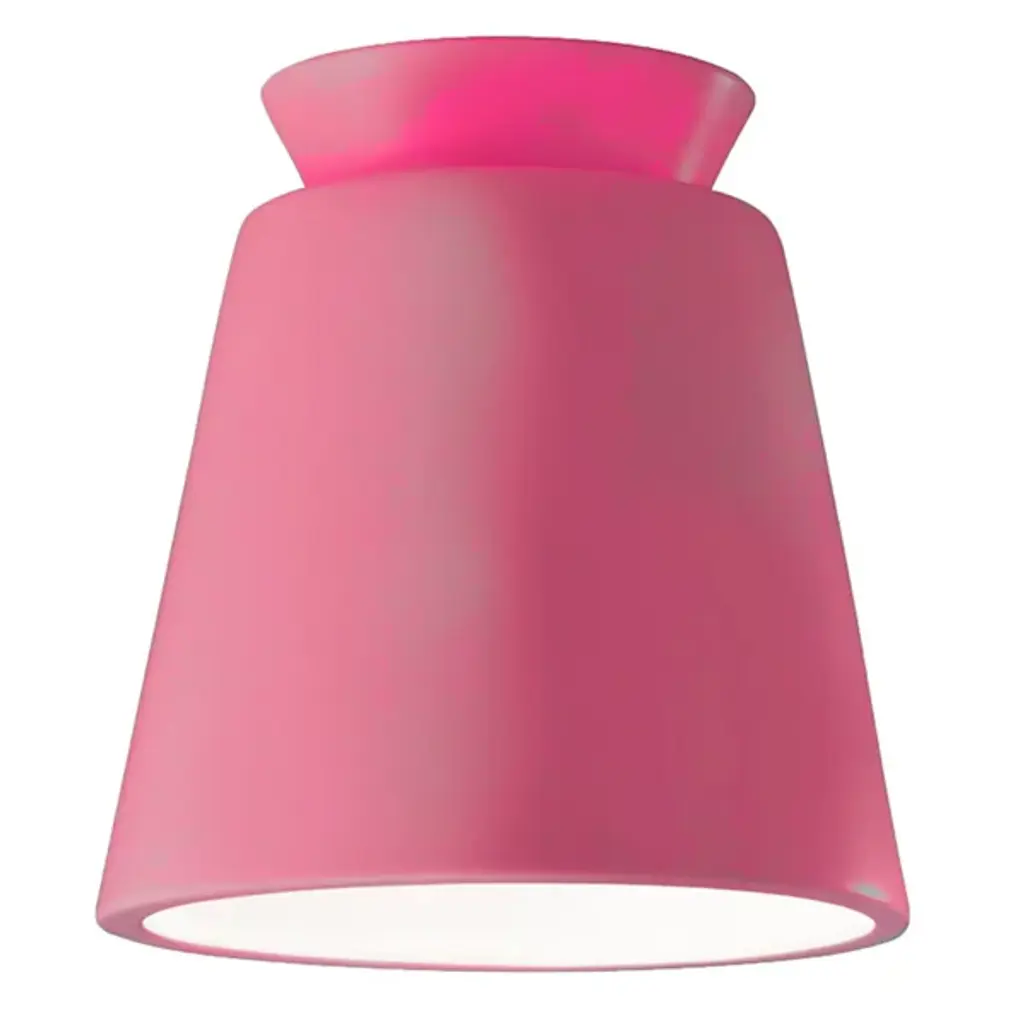 Improve your indoor lighting scheme with a Justice Design Group Radiance Cone Flushmount. This modern, overhead light is sculpted with a sleek and stylish ceramic exterior, allowing for a striking and durable design. This powerful, cone-shaped light produces warm, ambient downlight that will reach the far corners of your favorite indoor space. Use this overhead flushmount light to transform the look of your living room, hallway, bedroom or finished basement space.