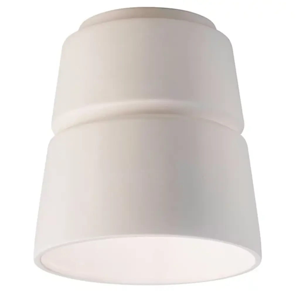 Improve your outdoor lighting scheme with a Justice Design Group Radiance Cone Outdoor Flushmount. This modern, overhead light is sculpted with a sleek and stylish ceramic exterior, allowing for a striking and durable design that holds up to the elements. This powerful, cone-shaped outdoor light produces warm, ambient downlight that will reach the far corners of your favorite outdoor space. Use this overhead flushmount light to transform the look of your front porch or back patio space.
