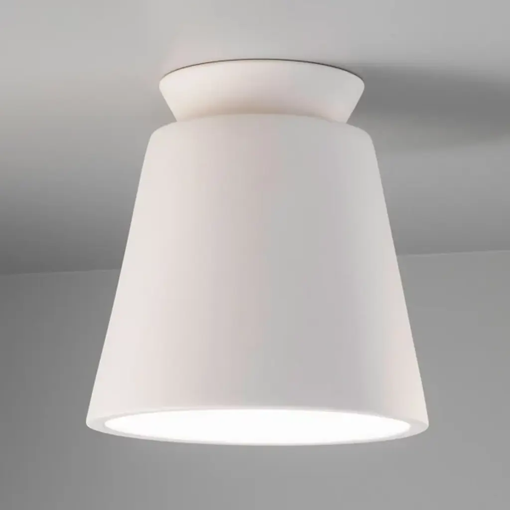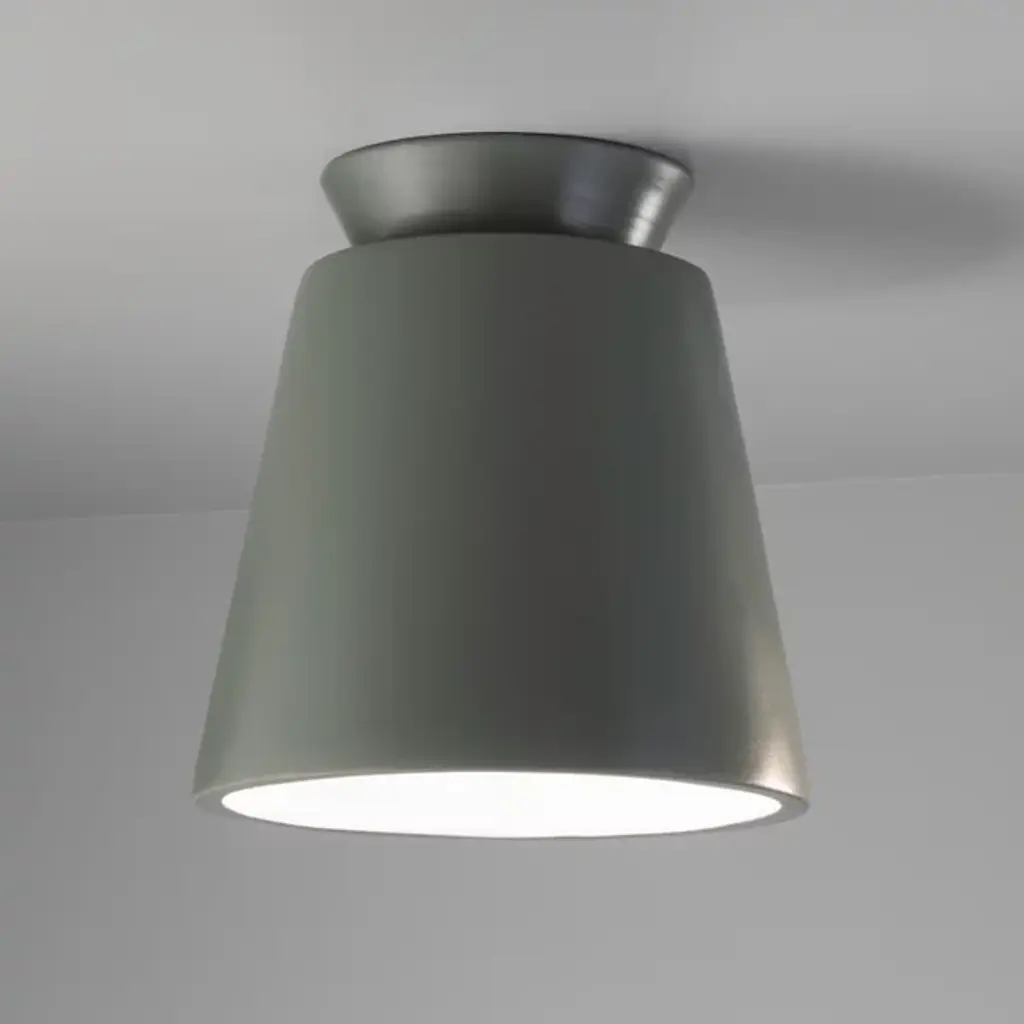 Reimagine how beautiful your indoor space could be with a Justice Design Group Radiance Trapezoid Flushmount. This overhead, flushmount ceiling light has a sleek and stylish ceramic exterior, allowing for a striking and durable design. This powerful, overhead light produces warm, ambient downlight that will reach the far corners of your favorite indoor space. Use this overhead flushmount light to transform the look of your living room, hallway, bedroom or finished basement space