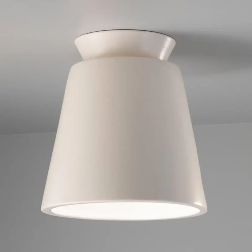 Reimagine how beautiful your indoor space could be with a Justice Design Group Radiance Trapezoid Flushmount. This overhead, flushmount ceiling light has a sleek and stylish ceramic exterior, allowing for a striking and durable design. This powerful, overhead light produces warm, ambient downlight that will reach the far corners of your favorite indoor space. Use this overhead flushmount light to transform the look of your living room, hallway, bedroom or finished basement space