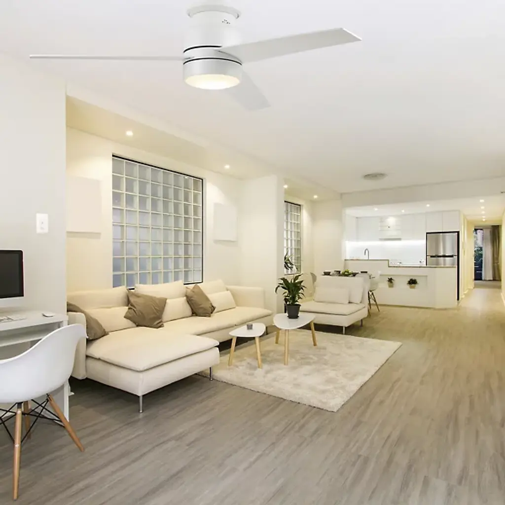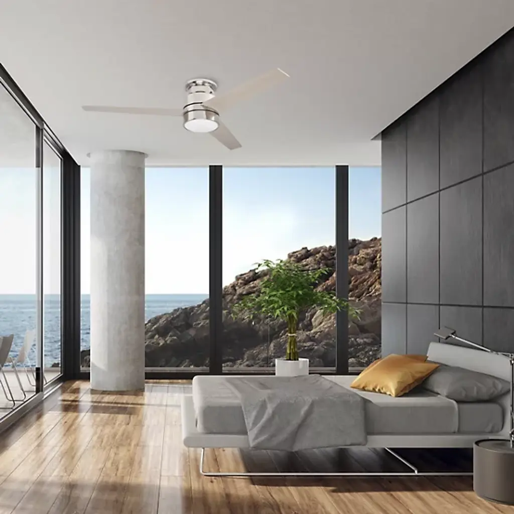 Give your home 21st-century functionality with the Raiden LED Flush Smart Ceiling Fan Fan by Carro USA. Elongated rectangular blades have been carefully crafted out of plywood. These blades circulate the air in your room courtesy of power from an AC motor. The eye is drawn to the motor’s elegant metallic containment, which leaves space for an integrated LED light. This LED gives your living space a brilliant glow that provides ample illumination for any scenario. This advanced furnishment is controllable via Wi-Fi apps and by voice via Amazon Alexa and more!