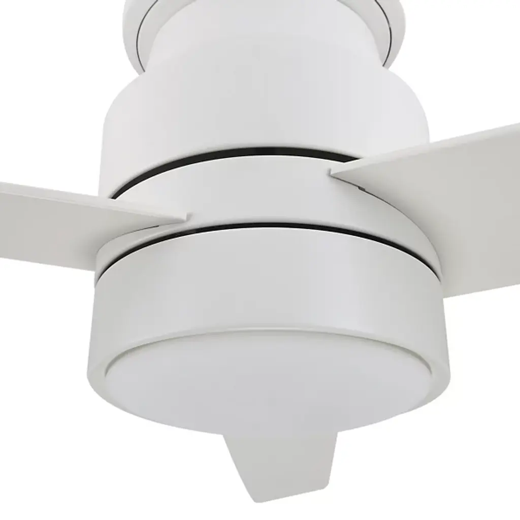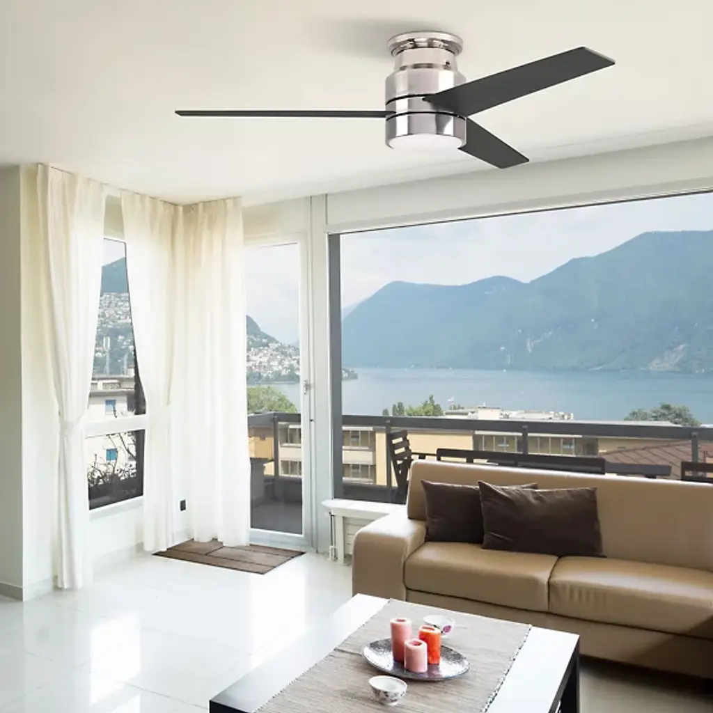Give your home 21st-century functionality with the Raiden LED Flush Smart Ceiling Fan Fan by Carro USA. Elongated rectangular blades have been carefully crafted out of plywood. These blades circulate the air in your room courtesy of power from an AC motor. The eye is drawn to the motor’s elegant metallic containment, which leaves space for an integrated LED light. This LED gives your living space a brilliant glow that provides ample illumination for any scenario. This advanced furnishment is controllable via Wi-Fi apps and by voice via Amazon Alexa and more!