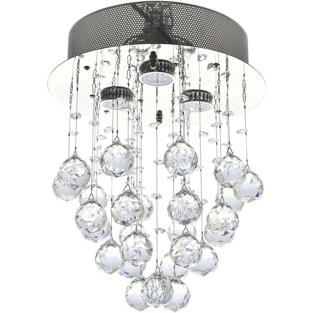 Maximize style without sacrificing space. The Rain Drop 3 Light Flush Mount is an elegant crystal chandelier designed specifically for smaller areas. With just the right touch of sparkle, its sleek, compact silhouette adds sophistication without overwhelming the room. Ideal for dining areas, living rooms, foyers, or bedrooms, this flush mount delivers the brilliance and charm of a full-size chandelierperfectly scaled for more modest spaces.