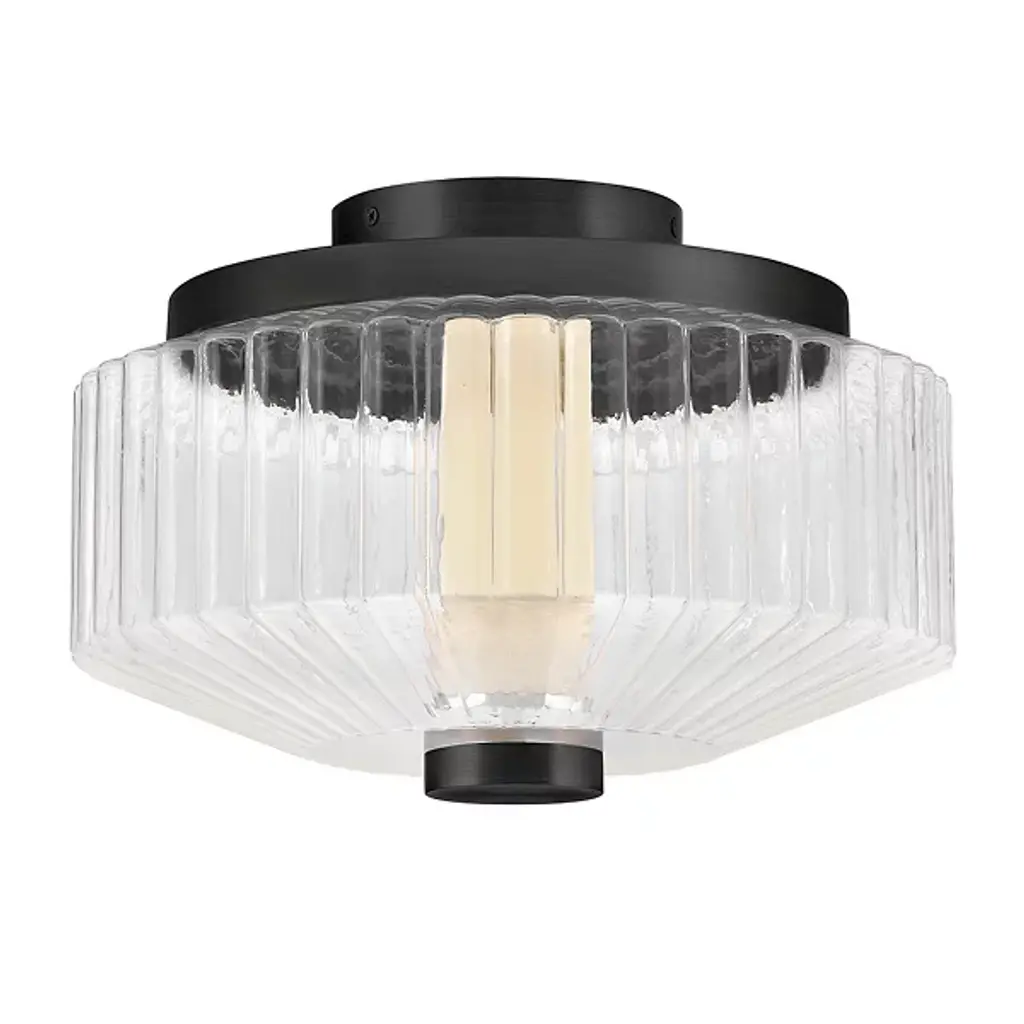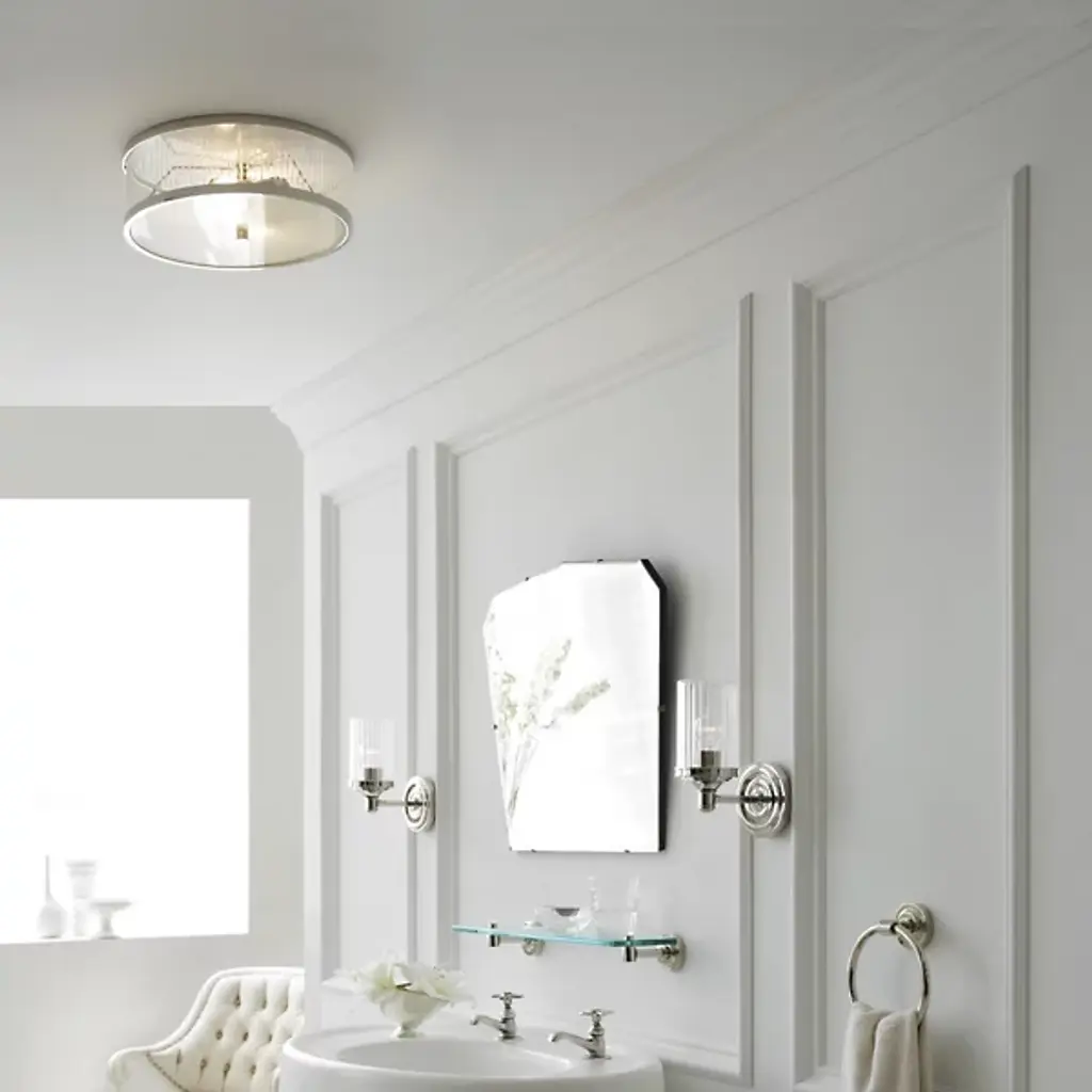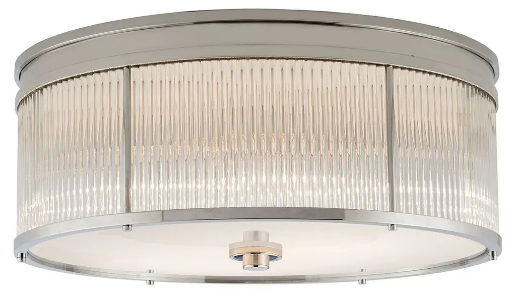 The Visual Comfort Signature, formerly known as Visual Comfort, Randolph Flushmount has a chic classic style with clear and frosted glass paired with shiny metalwork. The beveled glass adds a unique texture to the simple piece while also diffusing the illumination more evenly throughout the space. The bottom glass diffuser is finished with a matching metal finial, keeping the fixture consistent and cohesive.