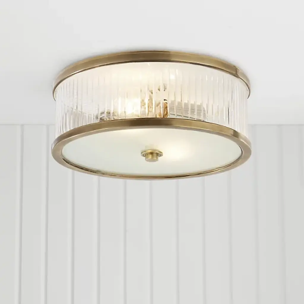The Visual Comfort Signature, formerly known as Visual Comfort, Randolph Flushmount has a chic classic style with clear and frosted glass paired with shiny metalwork. The beveled glass adds a unique texture to the simple piece while also diffusing the illumination more evenly throughout the space. The bottom glass diffuser is finished with a matching metal finial, keeping the fixture consistent and cohesive.