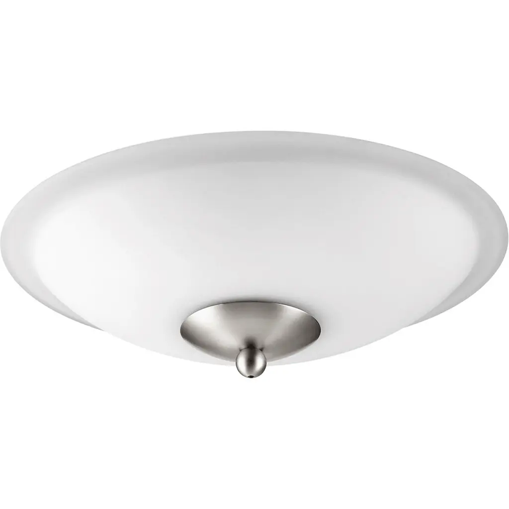 Two-light flush mount with smooth forms and etched glass that produce a beautiful, modern gas light effect.