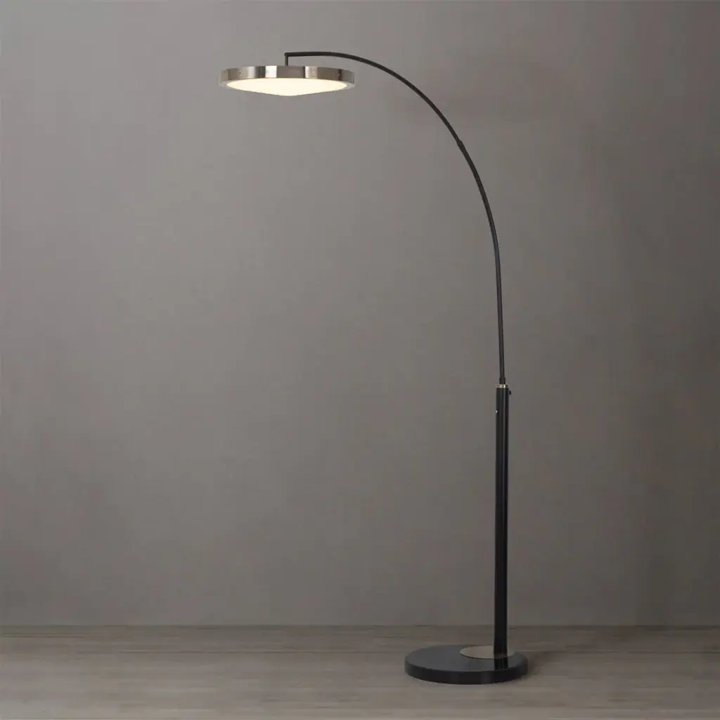 Illuminate your living space with the Redondo 1 Light Arc Floor Lamp, a contemporary masterpiece that seamlessly blends style and functionality. Its sleek matte black and weathered brass finish not only adds a touch of sophistication but also makes a bold statement in any room. The unique arc design, coupled with the baffled shade diffuser and built-in powerful LED module, create an enchanting play of light, ensuring that this arc floor lamp is not just a source of illumination but a captivating focal point in your home. Ideal for small spaces with its slim silhouette, the Redondo Floor Lamp stands on a sturdy marble base, embodying durability and timeless elegance. With dimmable features and contract-grade construction, Redondo is more than just a floor lamp "“ it''s a testament to modern design at its finest.• Redondo boasts a distinctive arc design that adds a modern touch to your space, making it a visual delight.• The elegant combination of Matte Black and Brass finish enhances the lamp''s aesthetic appeal, creating a statement piece in any room.• Experience a mesmerizing play of light with the baffled shade diffuser, adding an artistic and captivating element to the lamp.• Illuminate your space efficiently with the built-in powerful LED module, ensuring bright and energy-efficient lighting.• Redondo''s slim profile makes it perfect for small spaces, allowing you to add a touch of style even in tight corners.• Tailor the ambiance to your liking with dimmable features, providing versatility in creating the perfect mood.• Anchored by a sturdy black marble base, Redondo not only stands tall in elegance but also ensures stability and durability.• Smart switch compatible - effortlessly sync with Amazon Echo, Google Assistant, and Apple Home for easy & automated control.• Contract grade: high quality materials, quality workmanship, built to last a lifetime & designed in Venice Beach, California. • NOVA of California is the oldest light company in North America and has been making original contemporary designs for 100 years. • Sustainability statement: We are committed to minimizing the unwanted impact our business has on the environment. We care for our planet.Illuminate your living space with the Redondo 1 Light Arc Floor Lamp "“ where contemporary design meets unparalleled functionality. Discover the entire collection: Redondo is also available in a torchiere floor lamp, arc, wall sconce and flush mount versions. Please explore the entire collection.