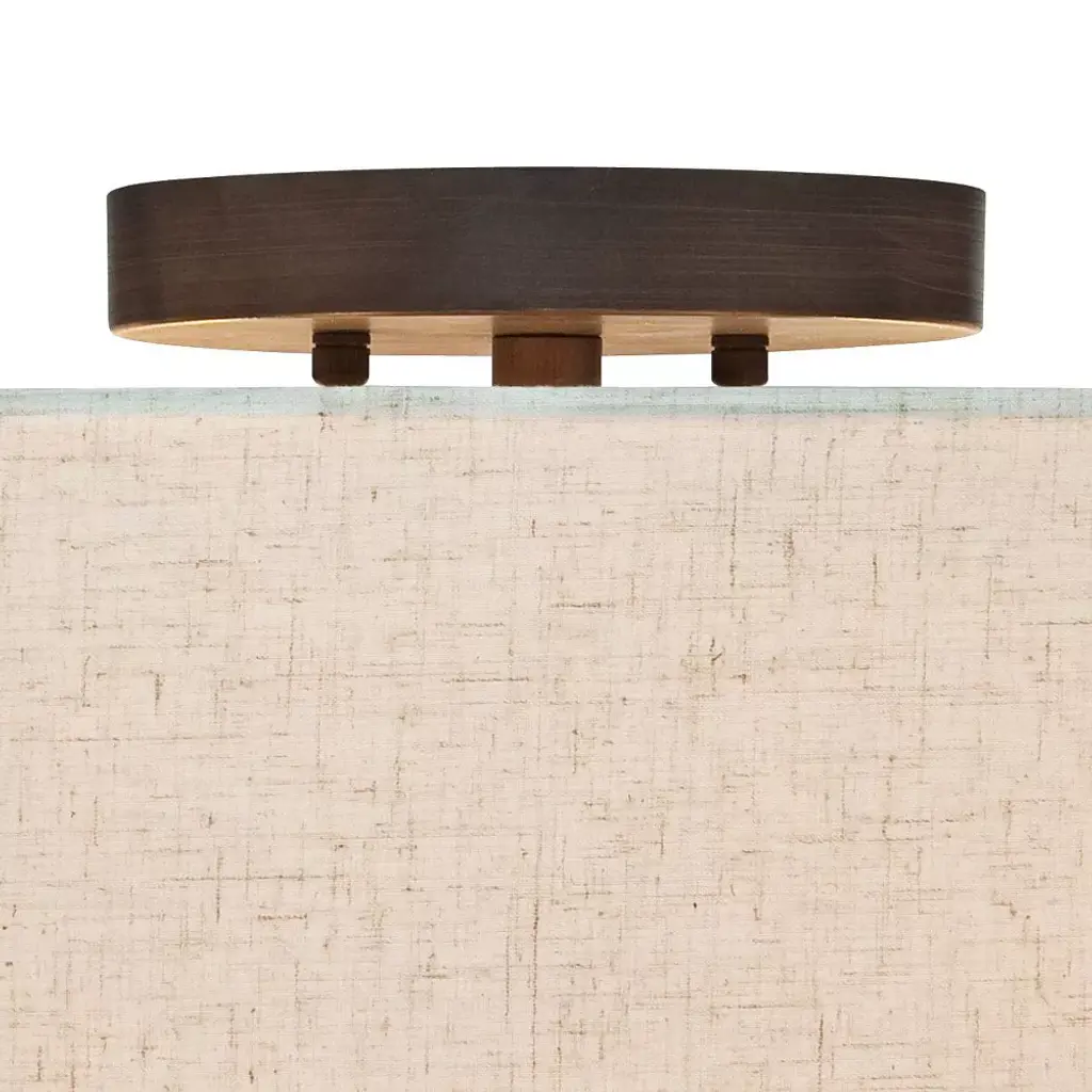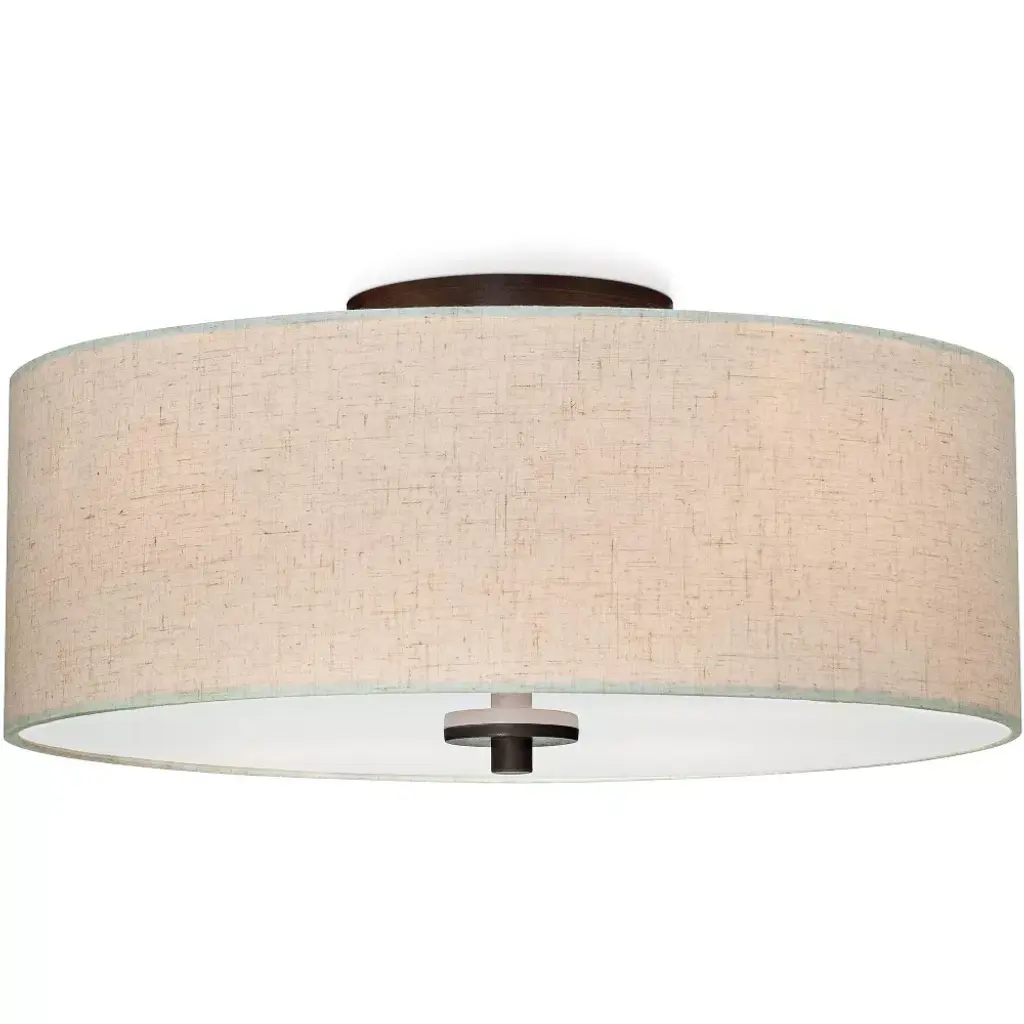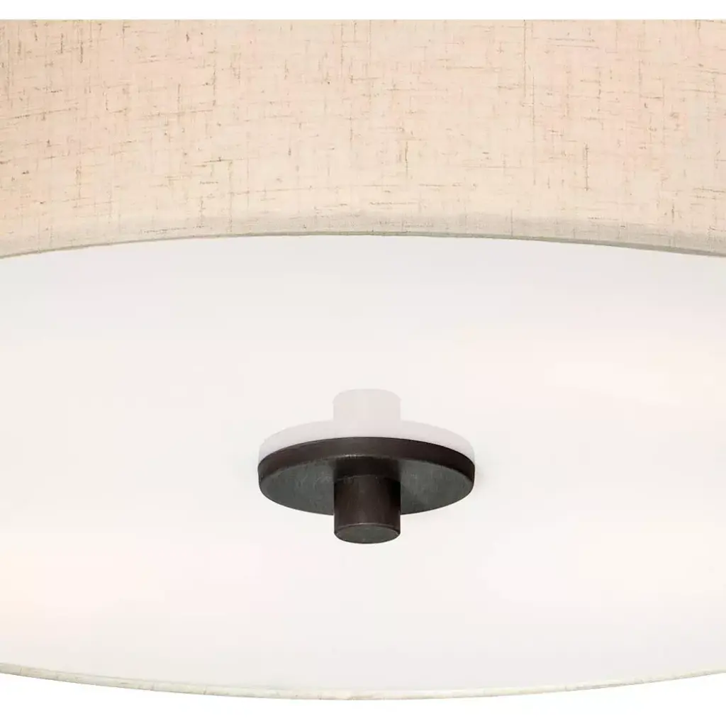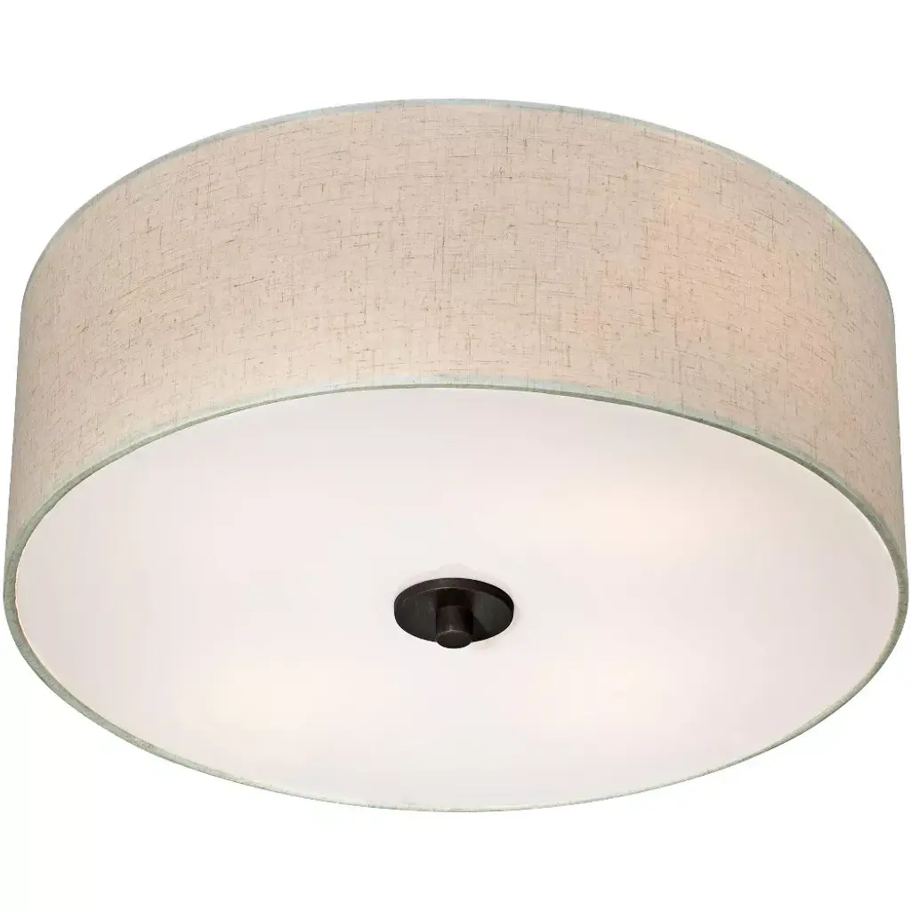 Get this smart, crisp look for your bedroom or study. This flushmount ceiling light has an off-white oatmeal drum shade, making it perfect for neutral color palettes. The bronze accents add a handsome touch, and a diffuser at the bottom softens the throw of light.