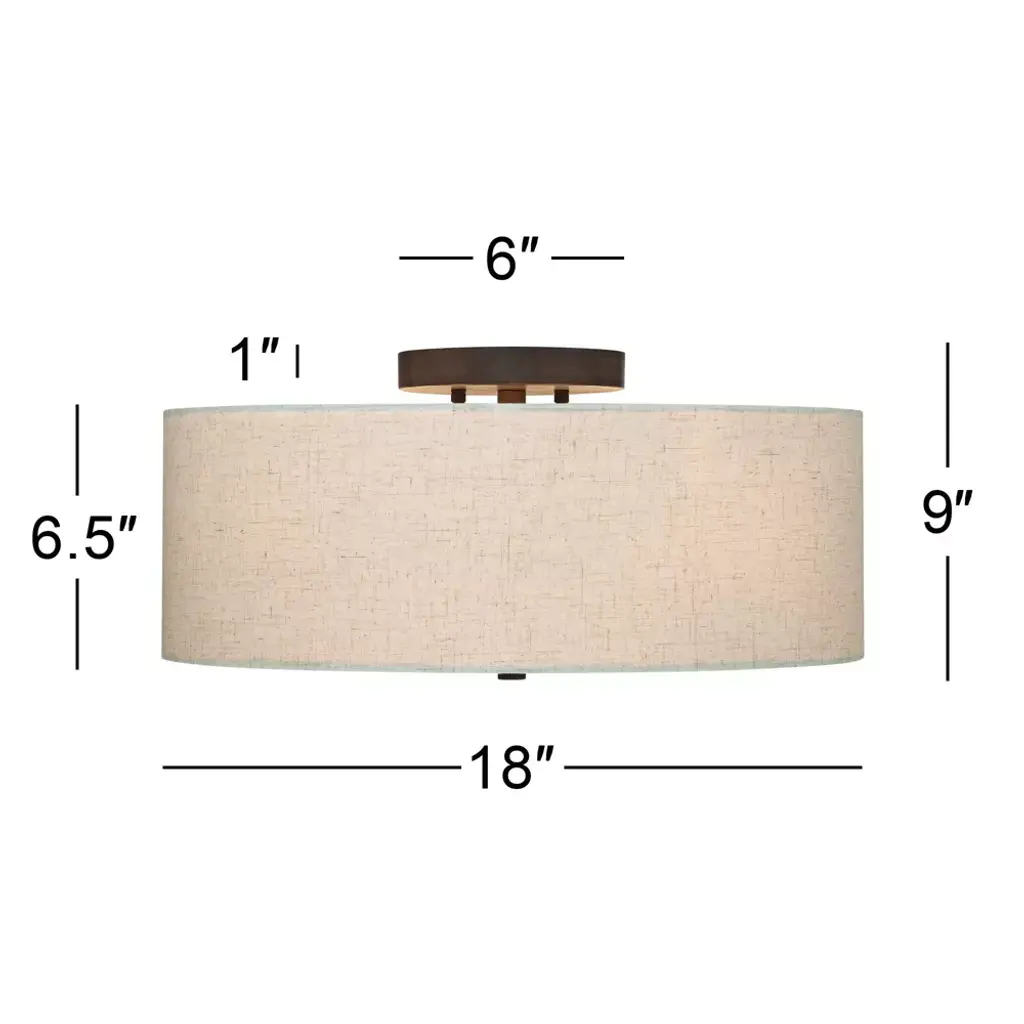 Regency Hill Sylvan Modern Ceiling Light Flush Mount Fixture 18" Wide Bronze 4-light Oatmeal Fabric Drum Shade For Bedroom Kitchen Living Room Hallway