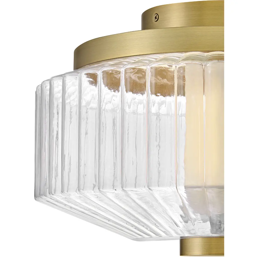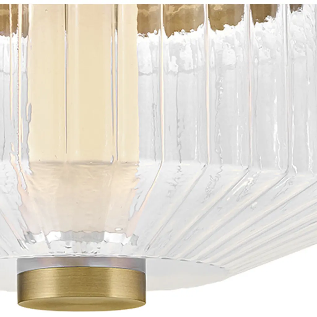 Reign's glamorous silhouette combines textural interest and transitional elements for a vibrant and versatile collection. Clear ribbed glass shades and luxe Black or Lacquered Brass finish present a captivating form from any angle. Illuminated by integrated LED lighting.