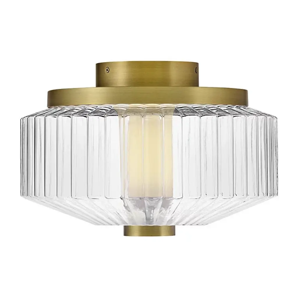 The Reign LED Flushmount from Fredrick Ramond features a sophisticated design that blends traditional and modern elements. Its steel frame and clear ribbed glass shade create a visually striking form from any angle. Integrated LED lighting provides efficient, long-lasting illumination while enhancing the textured details of the fixture. With a refined yet versatile aesthetic, it complements a variety of interiors, making it suitable for transitional spaces. Its sleek materials and timeless design ensure style and functionality in any setting.