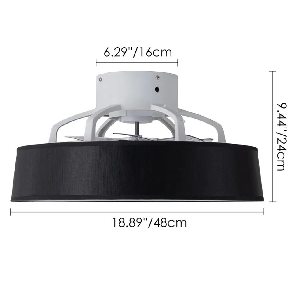 Rennnsan Althyn 18"w Drum Linen Boho Led Dimmable Flush Mount Ceiling Fan In Black
