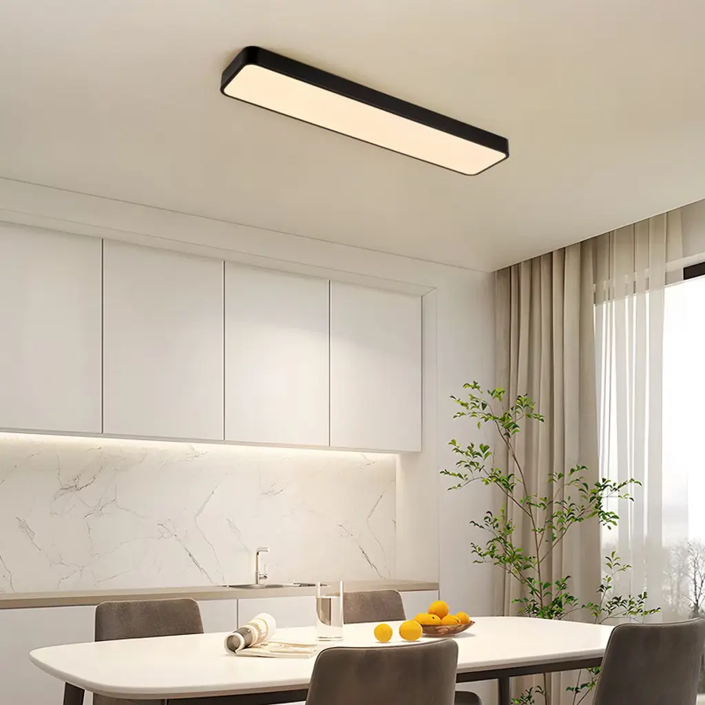 Elevate your space with this industrial-style 35-inch rectangular flush mount LED fixture. Crafted with durable materials and an eco-friendly design, it emits a warm 3000K light at 80 CRI for vibrant, natural colors. Fully dimmable, it adapts effortlessly to any mood or setting. The sleek, linear shape adds an edgy, modern touch while the complete installation kit ensures quick, hassle-free setup. Perfect for lofts, kitchens, or workspaces, this fixture blends rugged industrial aesthetics with practical functionality, creating a cozy yet contemporary atmosphere.