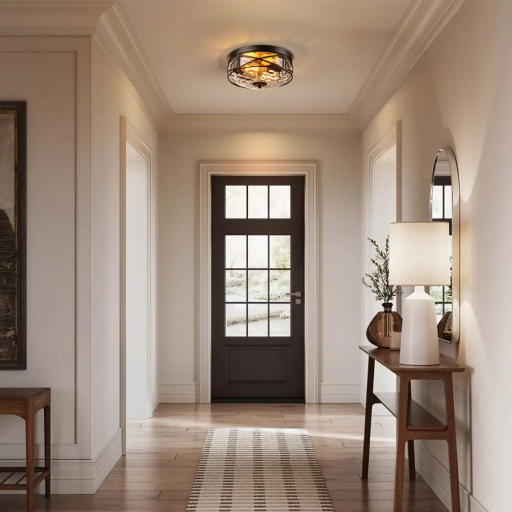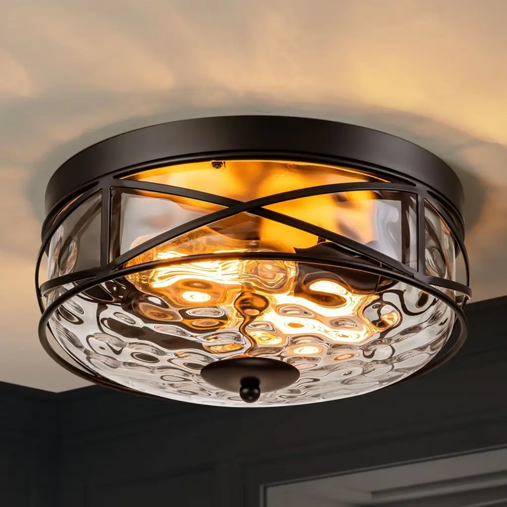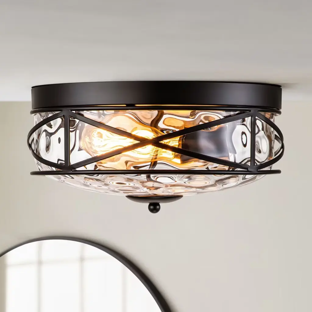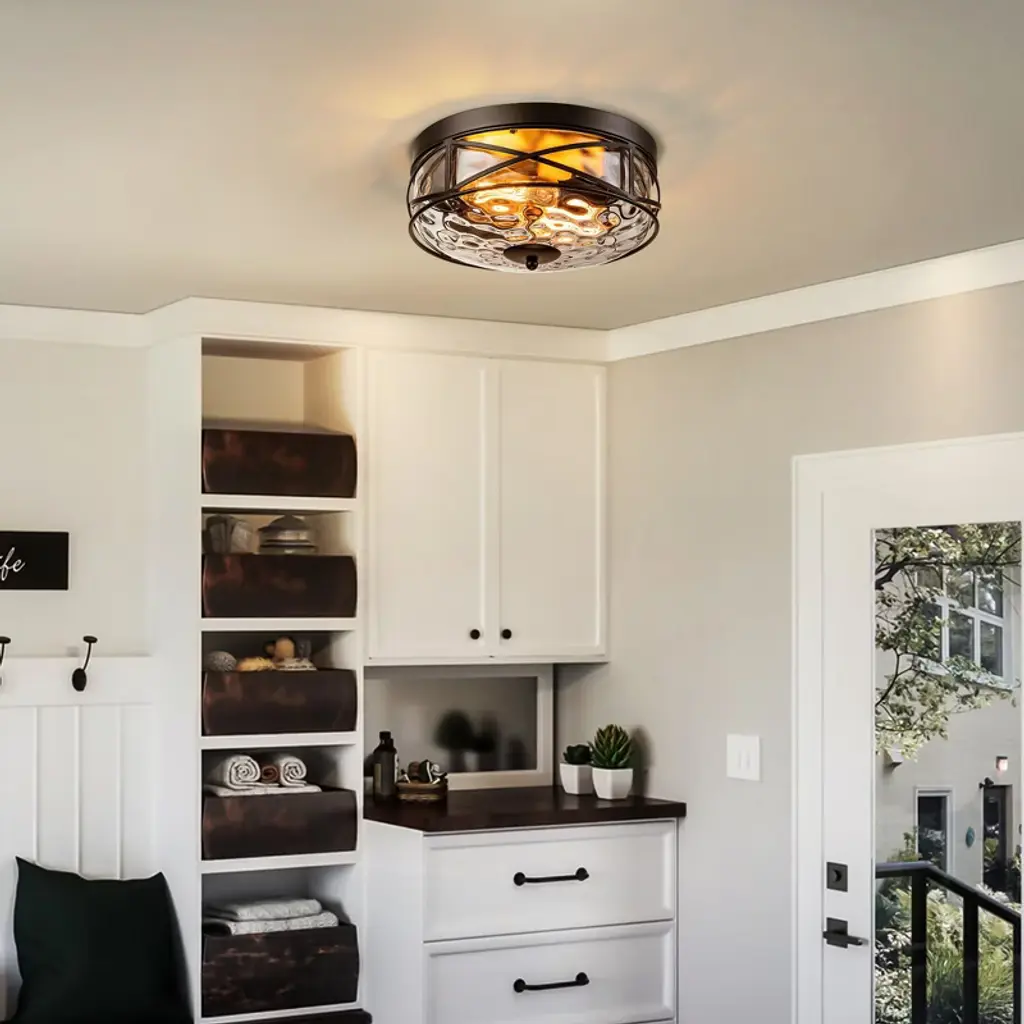 Bring timeless charm and a warm ambient glow to your space with this 2-light hammered glass flush mount. The artisan-style hammered glass adds texture and elegance, softening light while elevating any classic or transitional d¨¦cor. With its compact 11¡± size, it's perfect for bedrooms, hallways, or entryways. Compatible with dimmable bulbs and featuring E26 ceramic sockets, it allows easy mood control. This fixture includes all mounting hardware for a quick, hassle-free installation. Ideal for homeowners who value stylish upgrades with everyday functionality, this flush mount blends subtle sophistication with practical design.