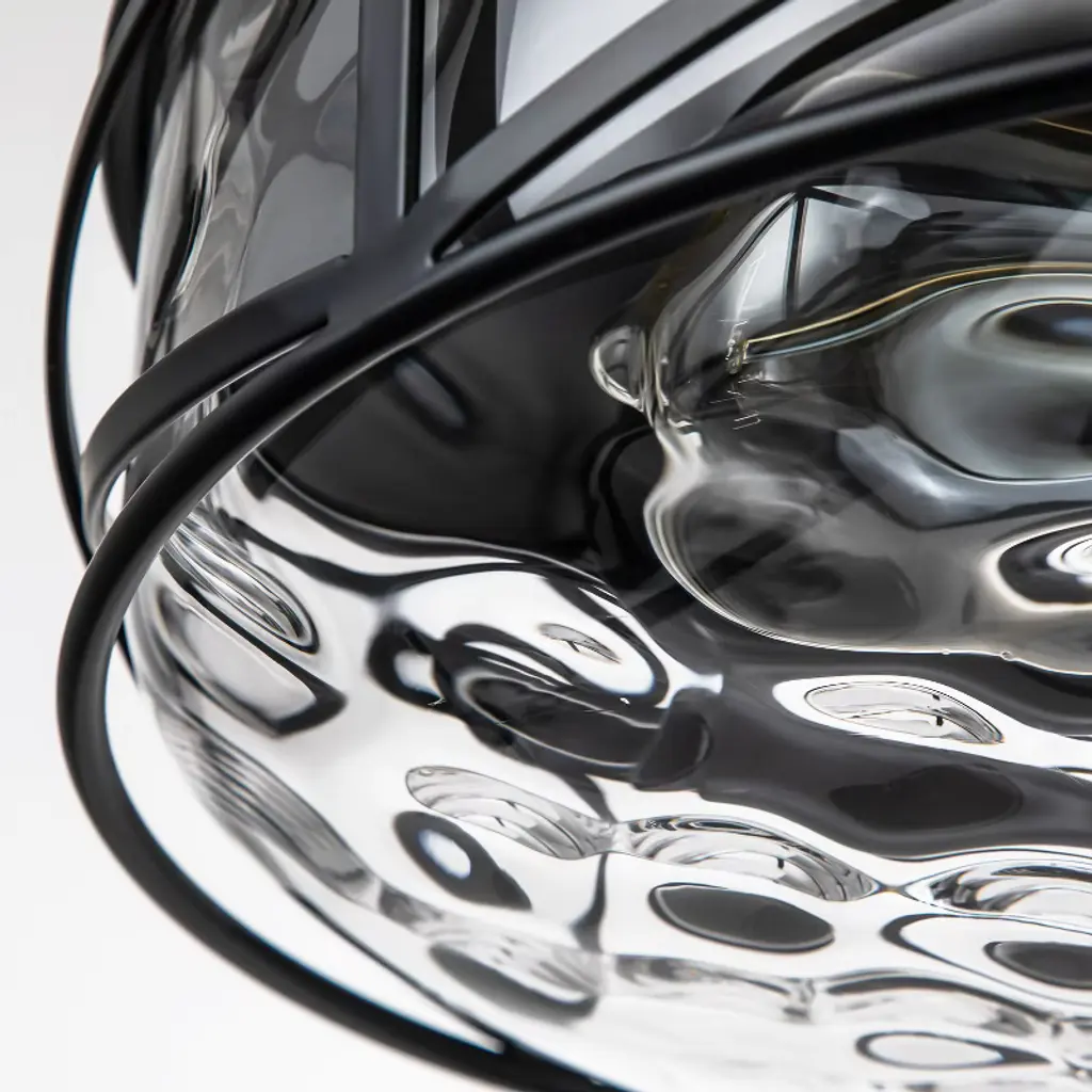 Rennnsan Duvona 11"w 2-light Bowl Hammered Glass Classic Dimmable Flush Mount In Black