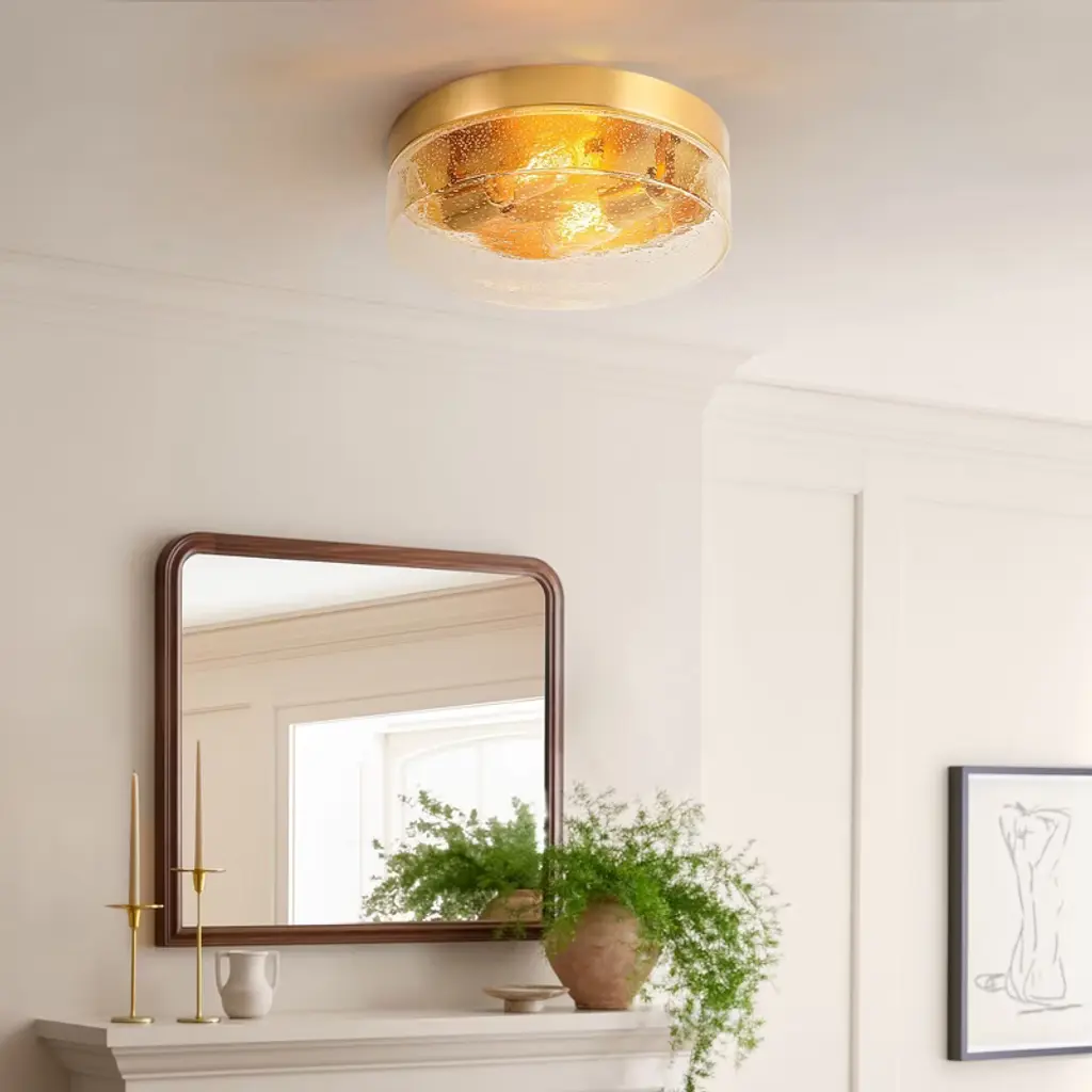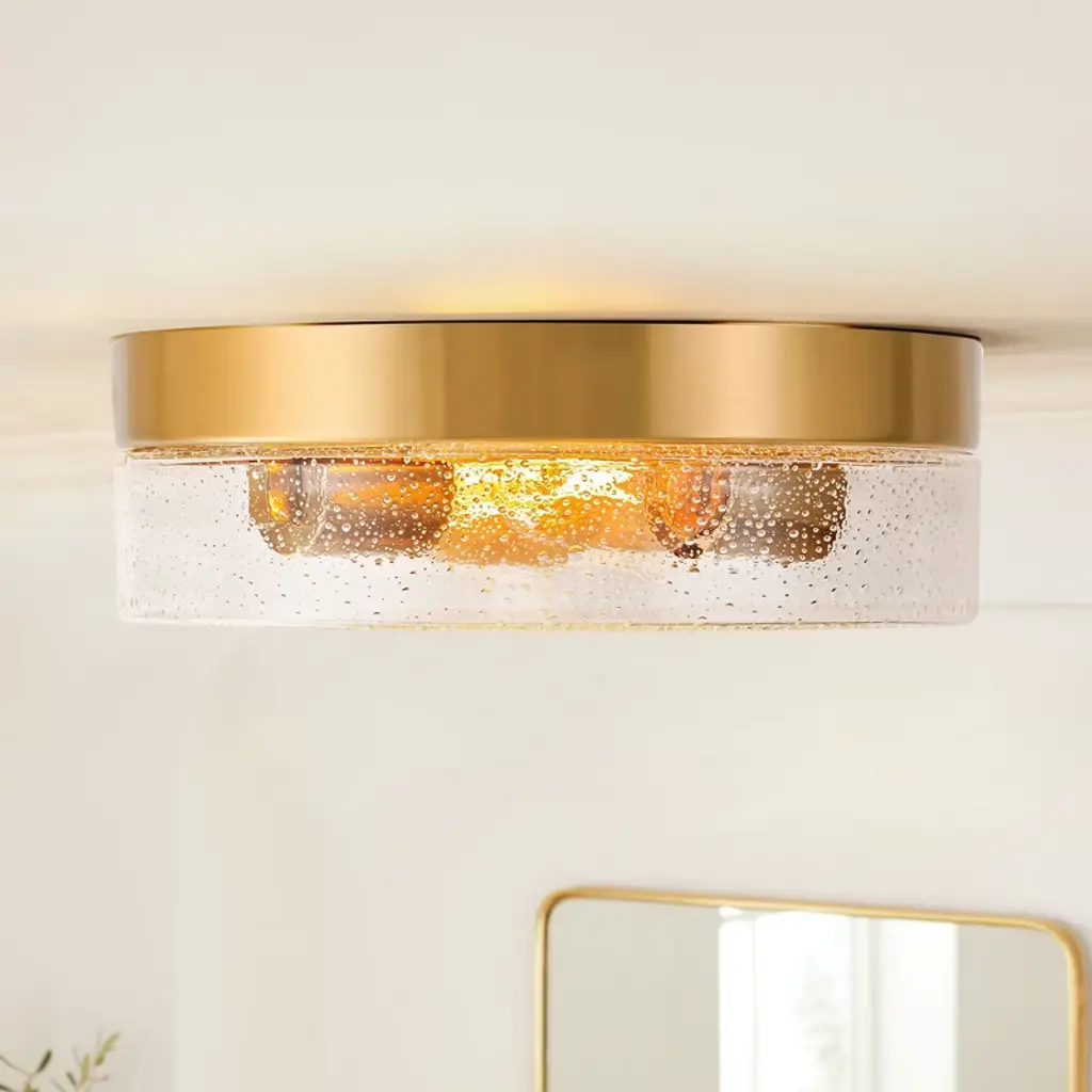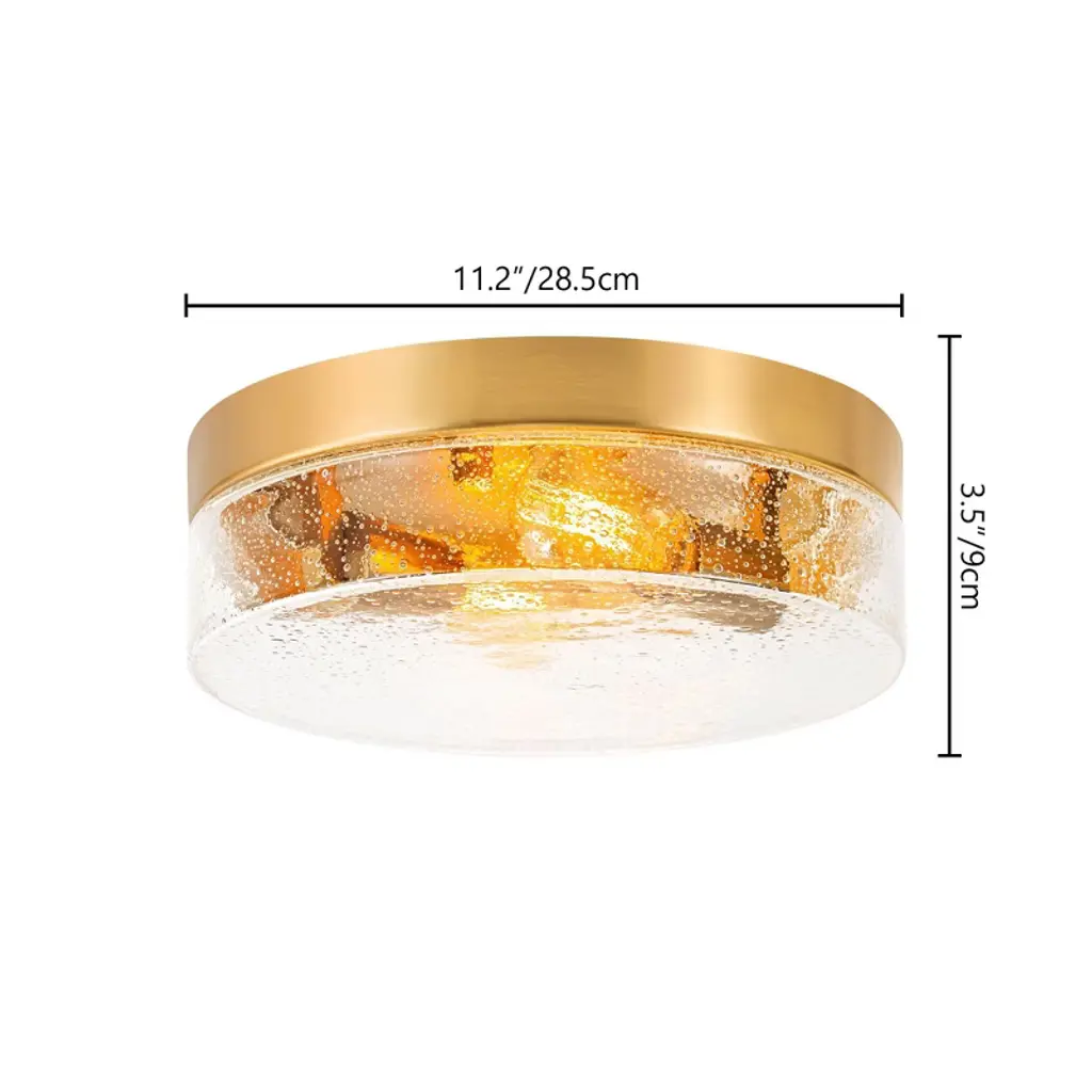 Rennnsan Solvar 11"w 2-light Drum Seeded Glass Modern Dimmable Flush Mount In Gold