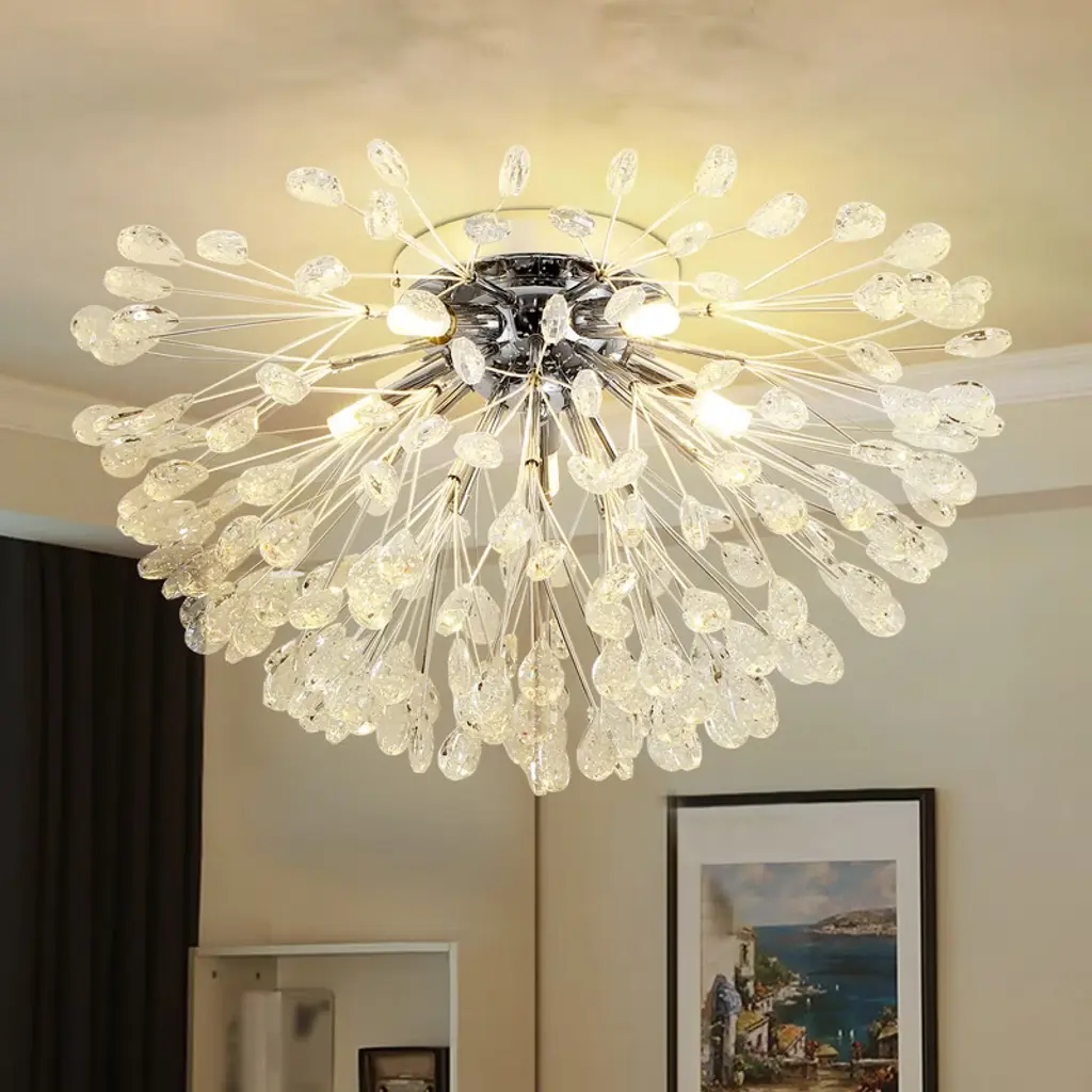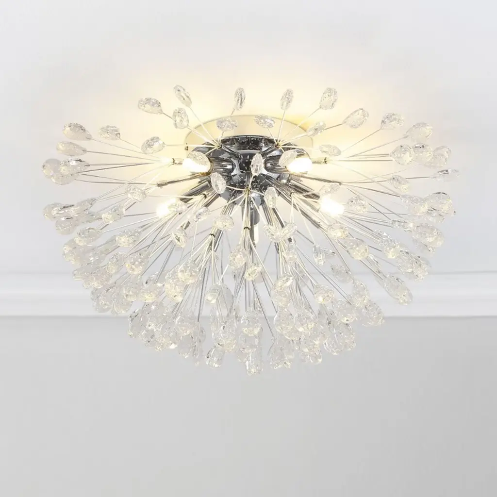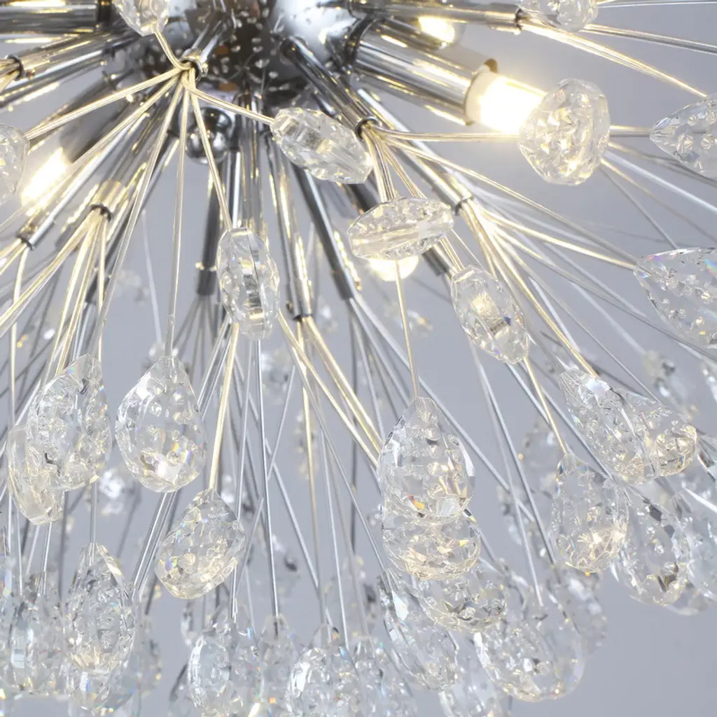 Add a burst of brilliance to your ceiling with this 5-light Sputnik flush mount. Designed with blooming crystal flowers and a sleek sunburst silhouette, this fixture brings modern glam to compact spaces like bedrooms, hallways, or entryways. Measuring 20", it creates a firework-like sparkle that catches the eye from every angle. Compatible with G9 60W bulbs (not included) and fully dimmable, it lets you tailor your lighting mood. Easy to install with all hardware included, it¡¯s a stunning statement piece for those who love artful design and elegant function.
