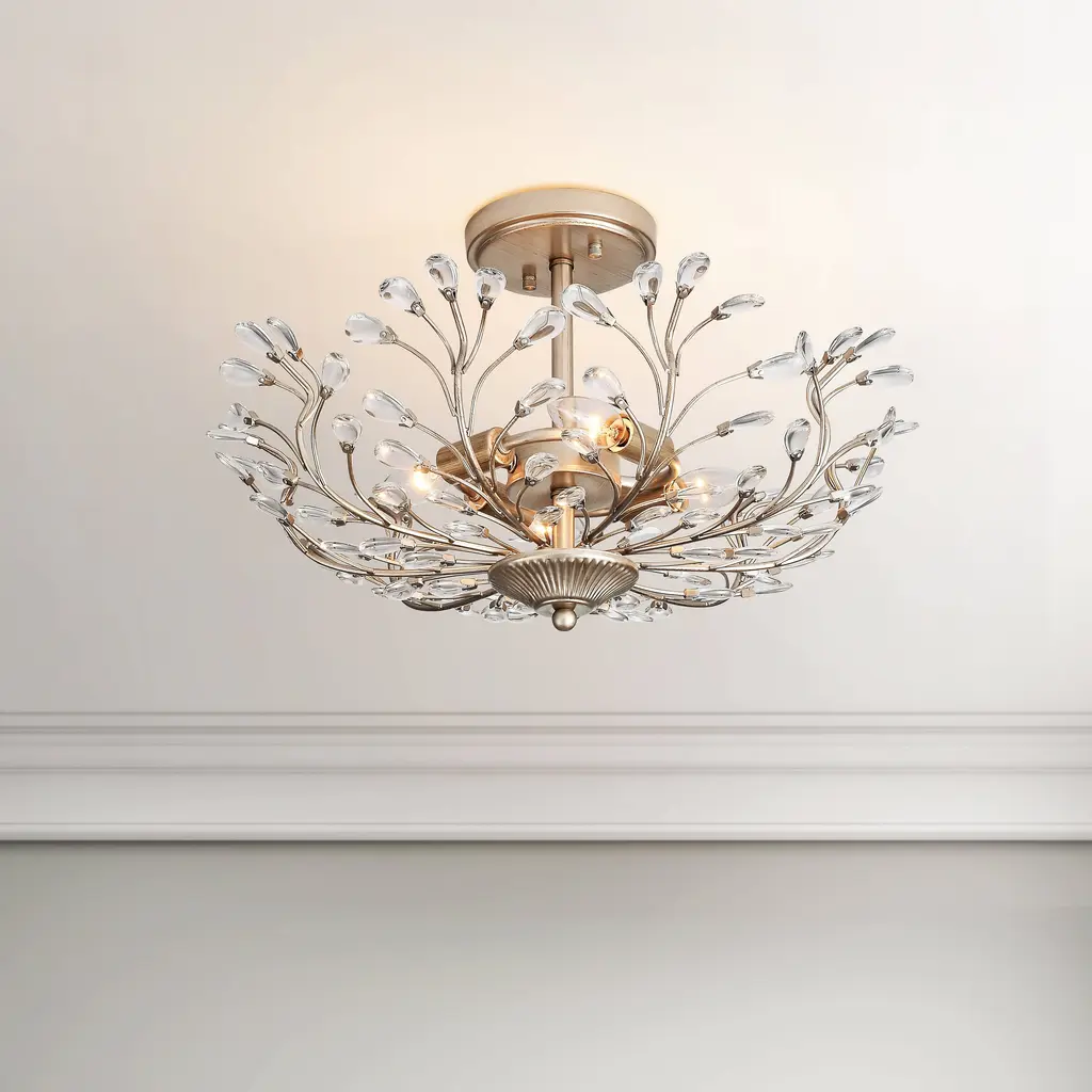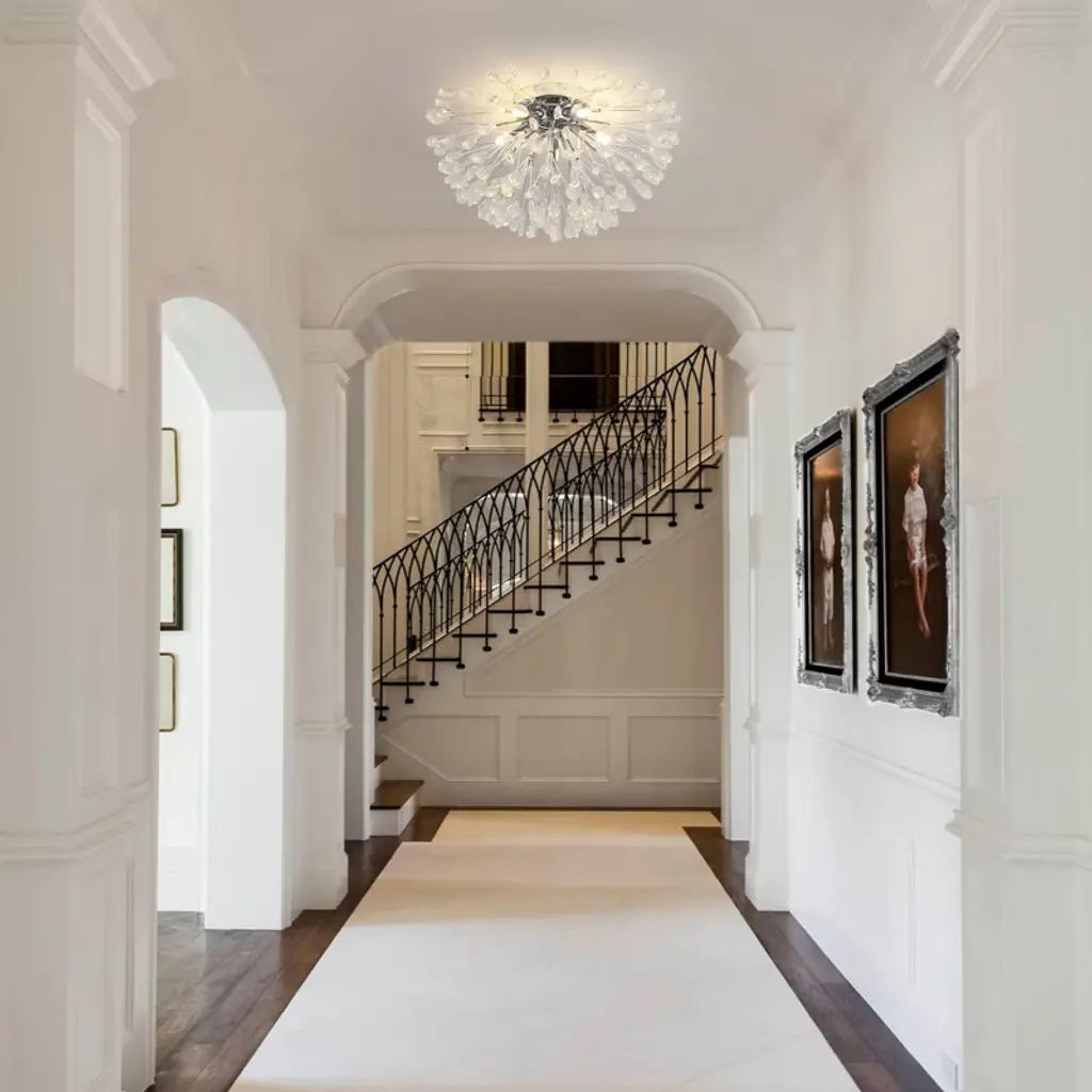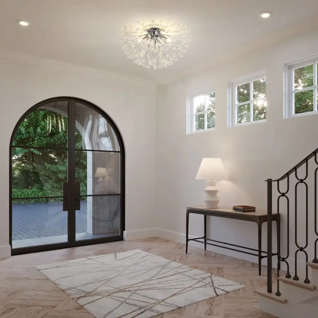 Add a burst of brilliance to your ceiling with this 5-light Sputnik flush mount. Designed with blooming crystal flowers and a sleek sunburst silhouette, this fixture brings modern glam to compact spaces like bedrooms, hallways, or entryways. Measuring 20", it creates a firework-like sparkle that catches the eye from every angle. Compatible with G9 60W bulbs (not included) and fully dimmable, it lets you tailor your lighting mood. Easy to install with all hardware included, it¡¯s a stunning statement piece for those who love artful design and elegant function.