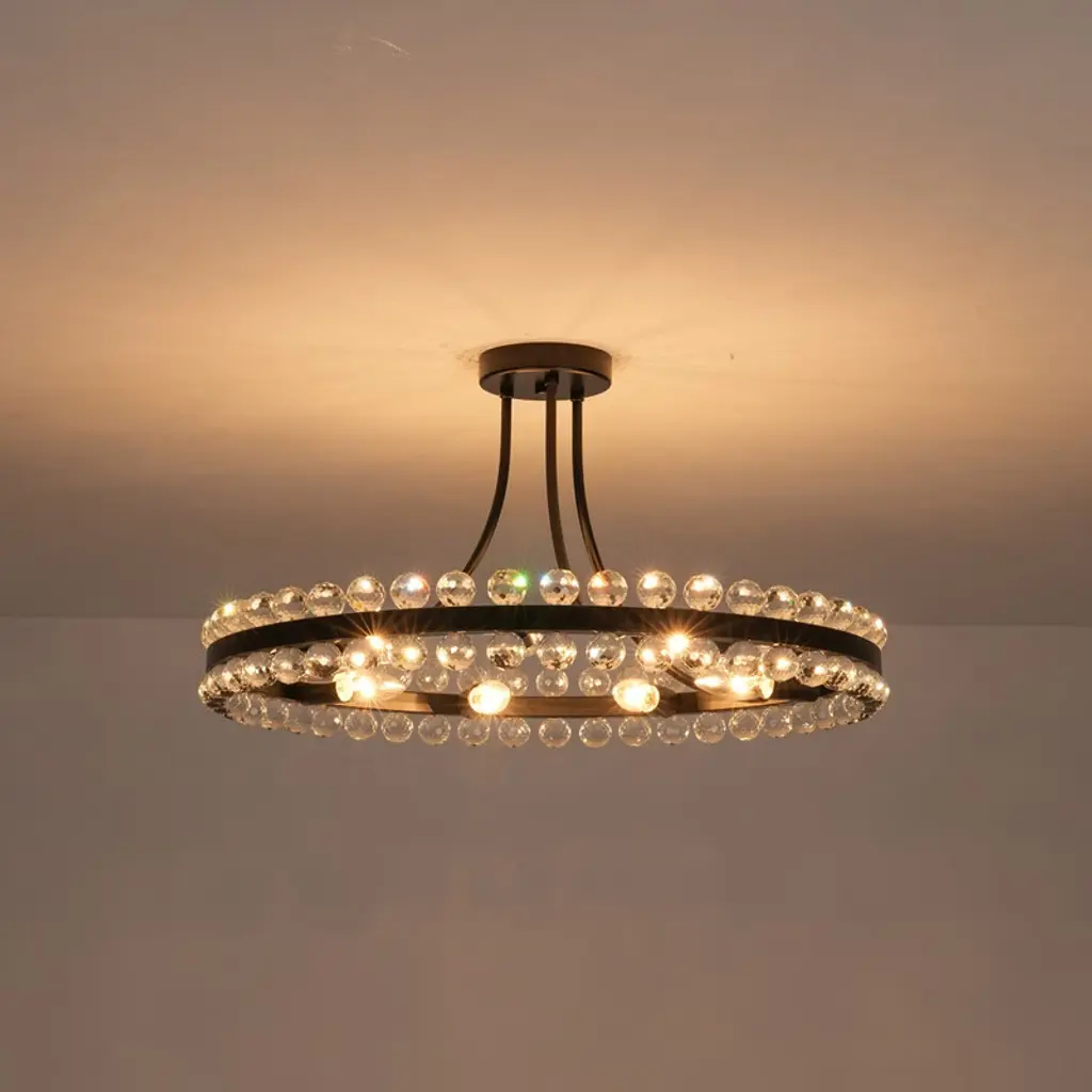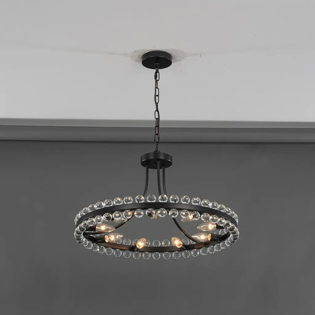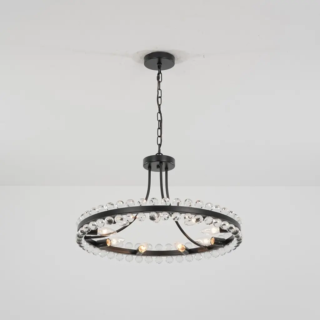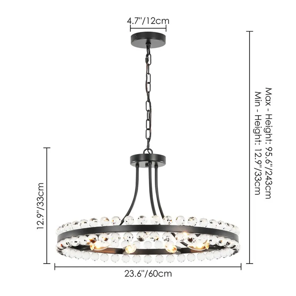 Offer versatile lighting with this 23"W dual-mount chandelier featuring sparkling beaded crystal globes. Adjust height and installation style easily for perfect fit in any space. Showcase modern glam with dazzling light refractions and a timeless wagon wheel design that complements traditional to contemporary interiors. Highlight a striking focal point that enhances dining rooms, living areas, or entryways. Enjoy dimmable functionality and easy installation, ideal for style-conscious, design-savvy homeowners seeking luxurious ambiance and adaptable d¨¦cor.